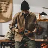 Camisa de trabalho masculina de manga comprida primavera e outono moda marca rua solto casual bolso design camisa externa jaqueta moda