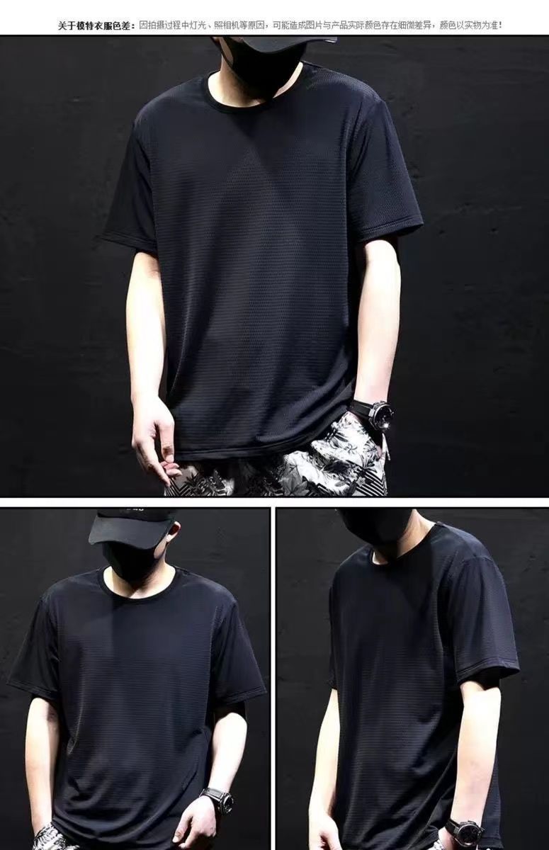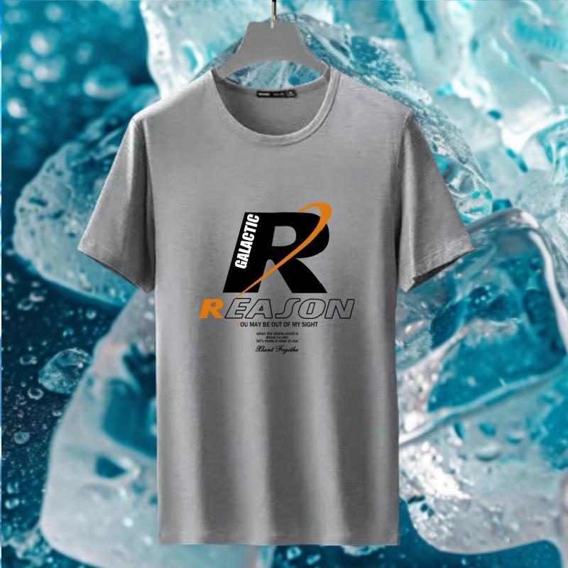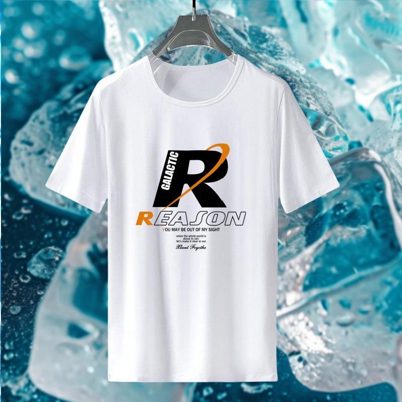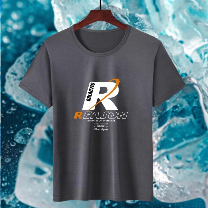 Camiseta Masculina de Manga Curta Estampada de Seda Gelo Fresca e Respirável de Secagem Rápida Transfronteiriça para o Verão 2025, Camiseta de Manga Curta Ligeiramente Solta, Camiseta Básica