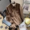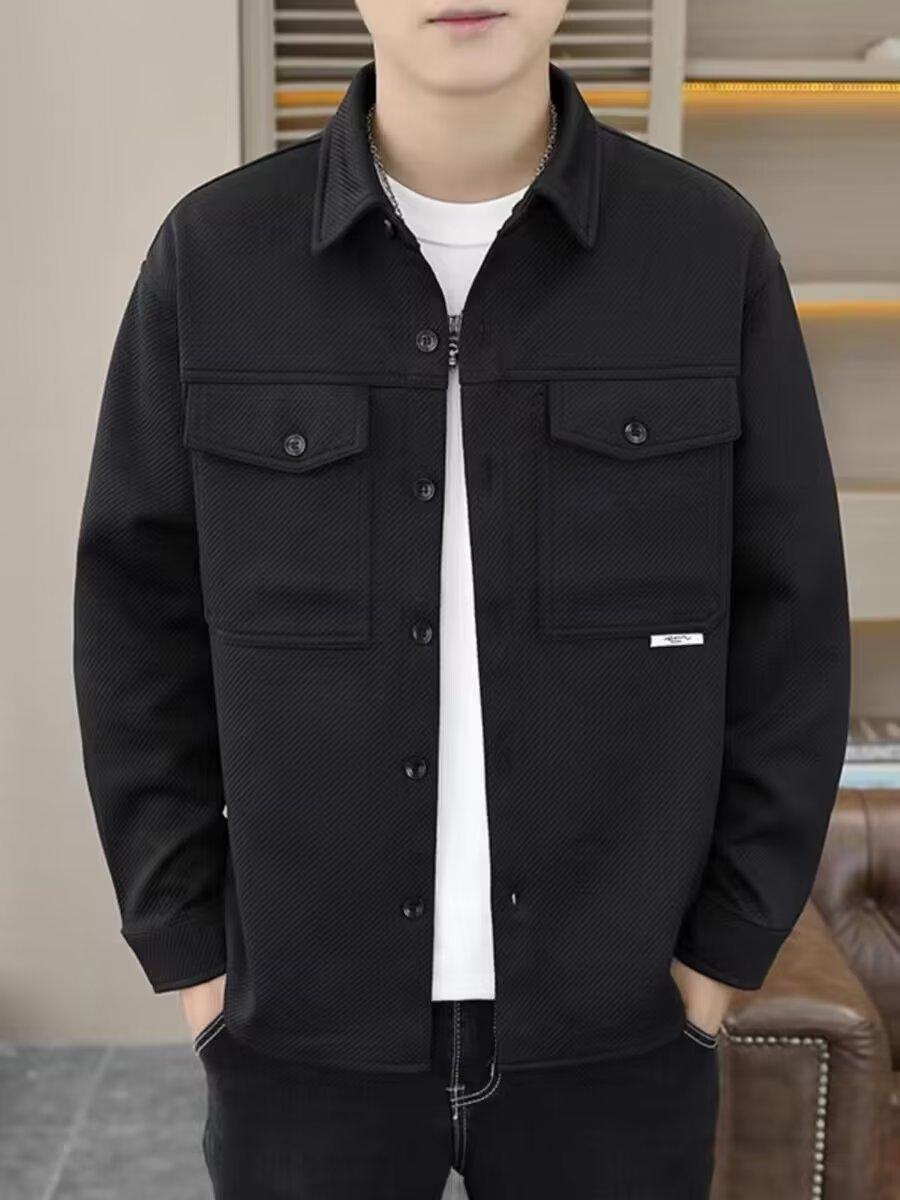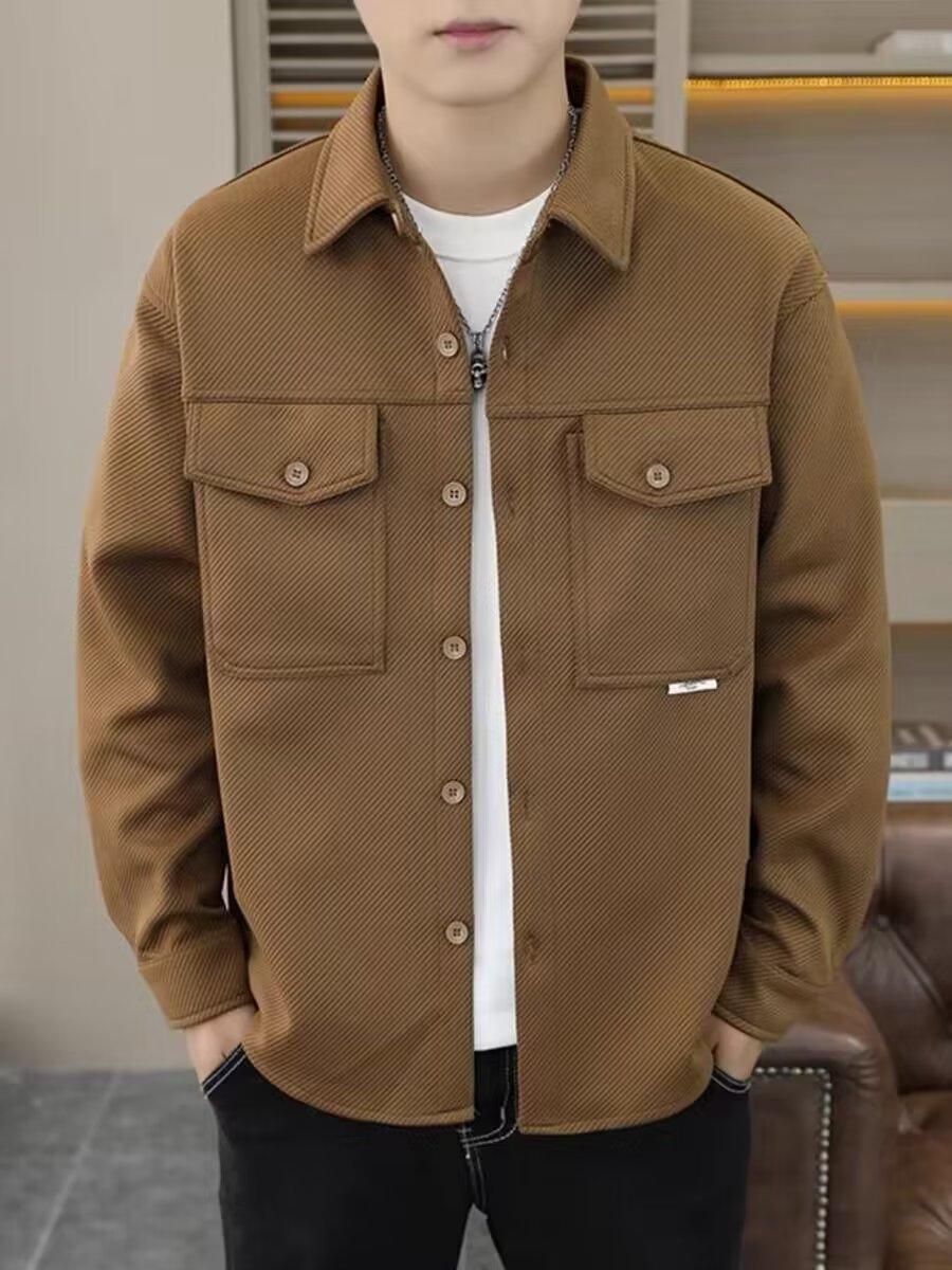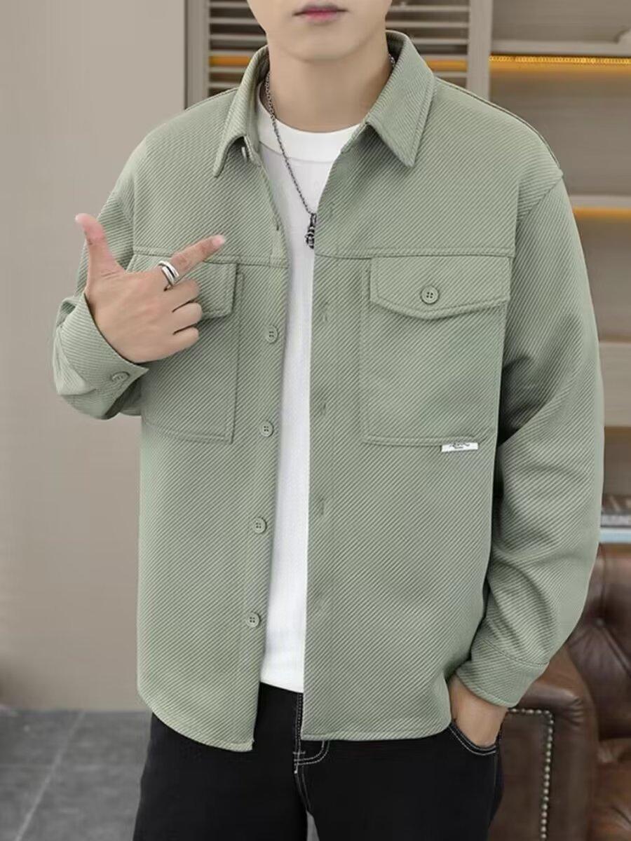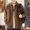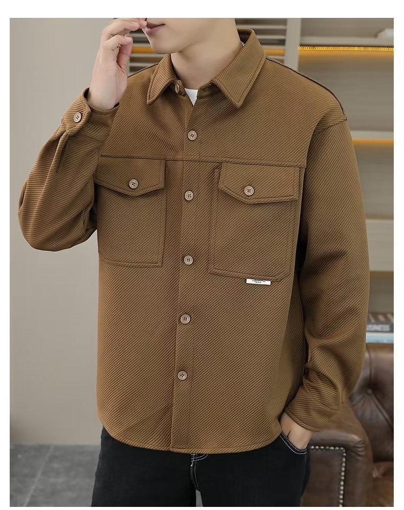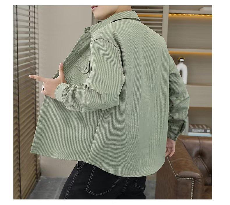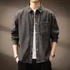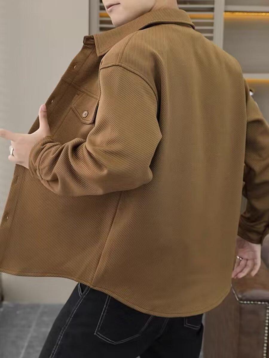 Camisa de trabalho masculina de manga comprida, moda primavera e outono, camisa casual de alta qualidade, jaqueta solta e bonita com lapela de primavera