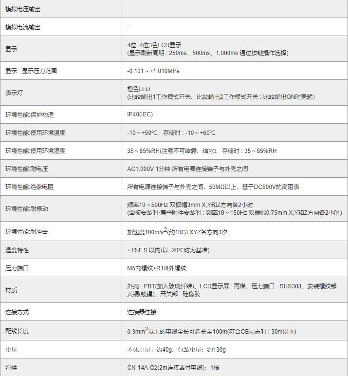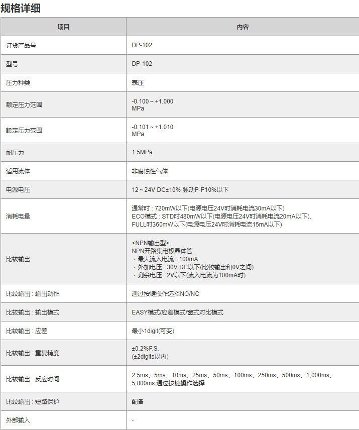 Sensor de pressão Panasonic Série DP-102 Interruptor de pressão Saída de tensão analógica Megapascal