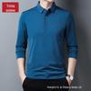 Camiseta masculina de manga comprida de seda gelada de primavera, jovem e meia-idade, camisa de base solta fina e casual da moda para o pai masculino