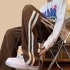 Calças casuais listradas americanas, marca da moda masculina, primavera e verão, soltas, retas, pernas largas, esportivas, high street, macacão novo