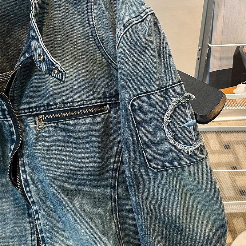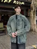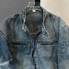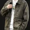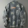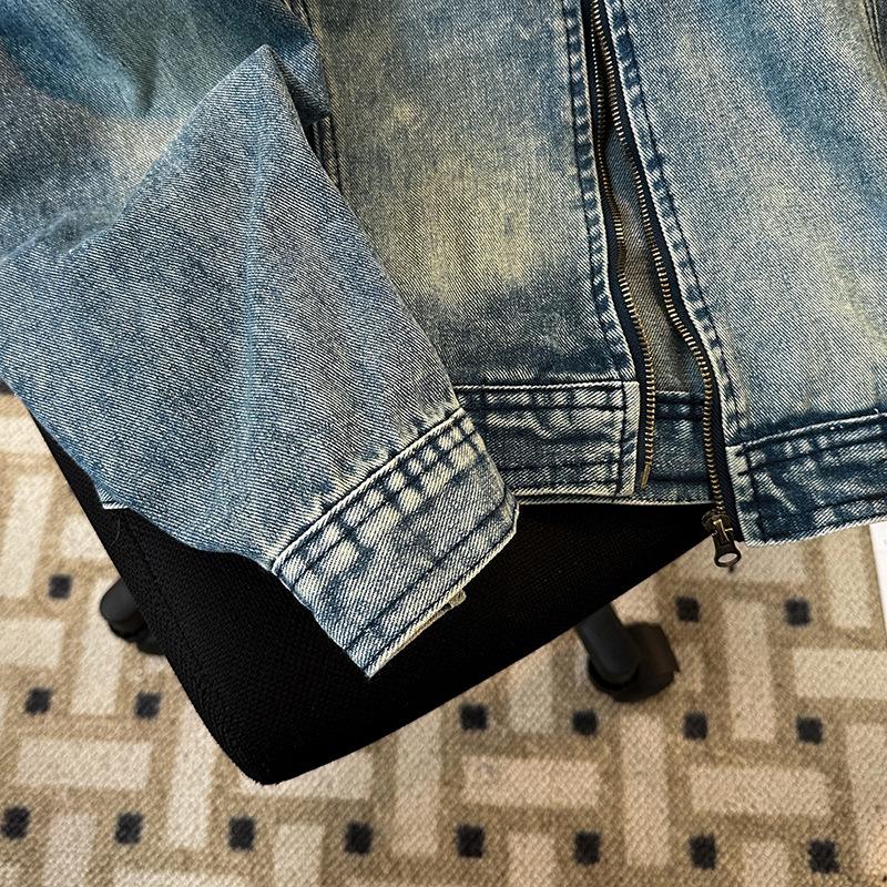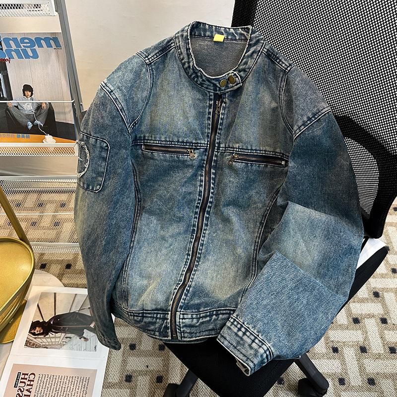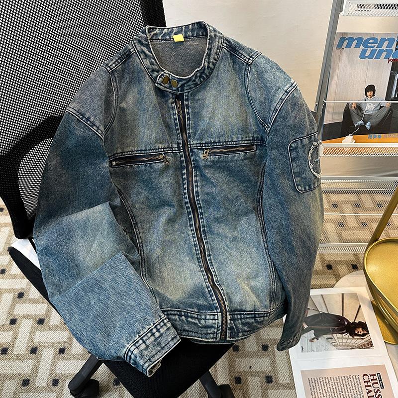 Casaco jeans lavado retrô estilo americano primavera com gola vertical, jaqueta solta de marca da moda masculina primavera e outono, combinando com tudo