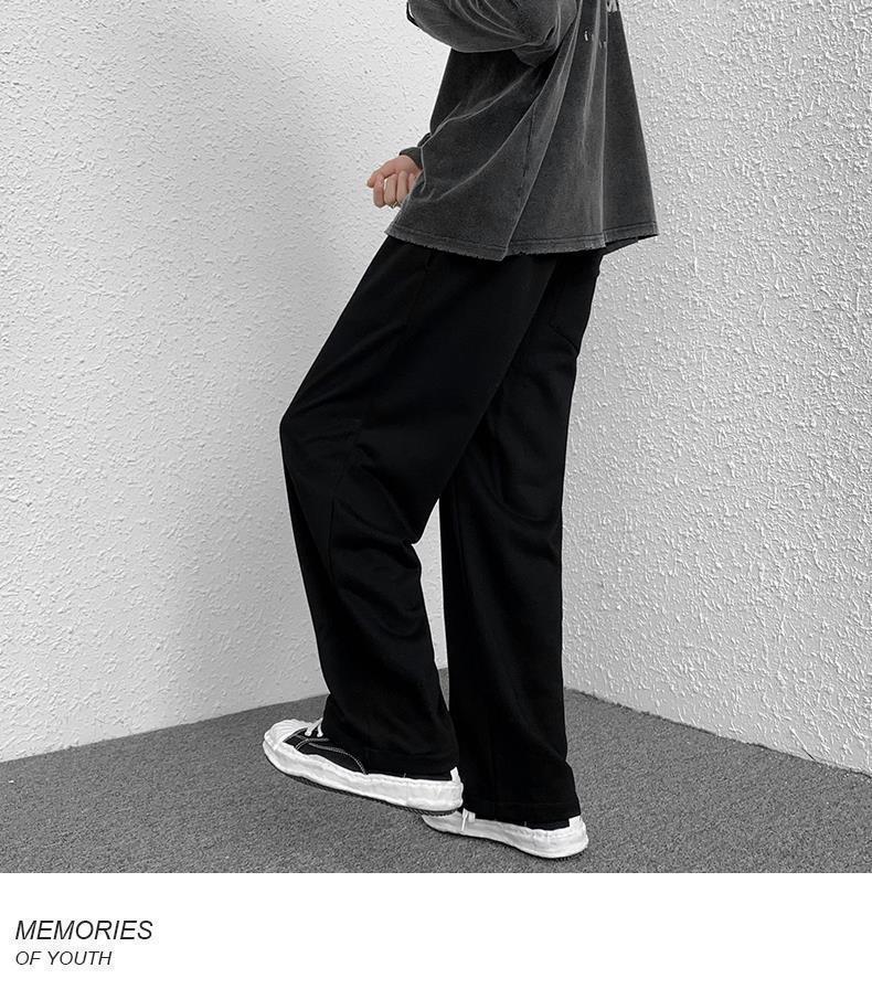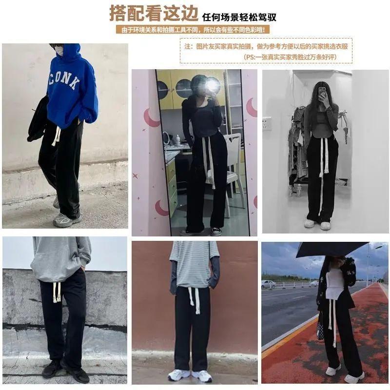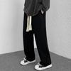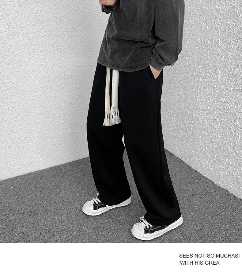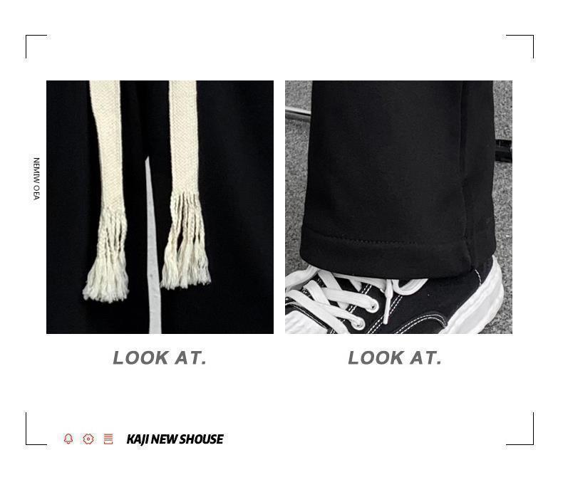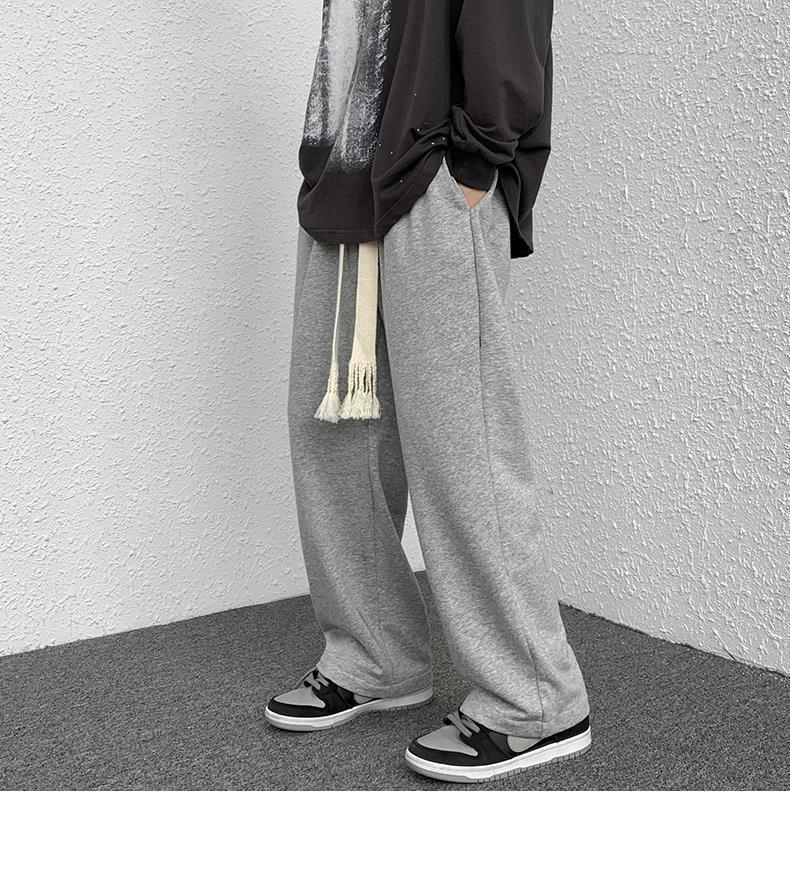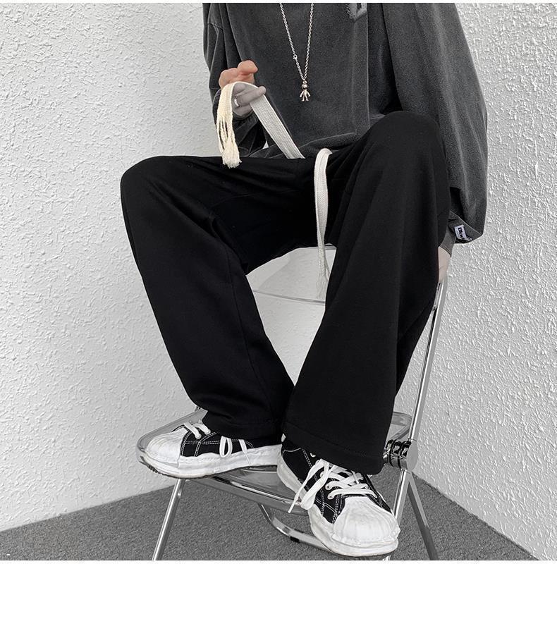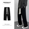 Calças de Moletom Masculinas Largas Retas Tecidas com Cordão Primavera e Verão High Street plus size Perna Larga Trendy Casual Cor Sólida