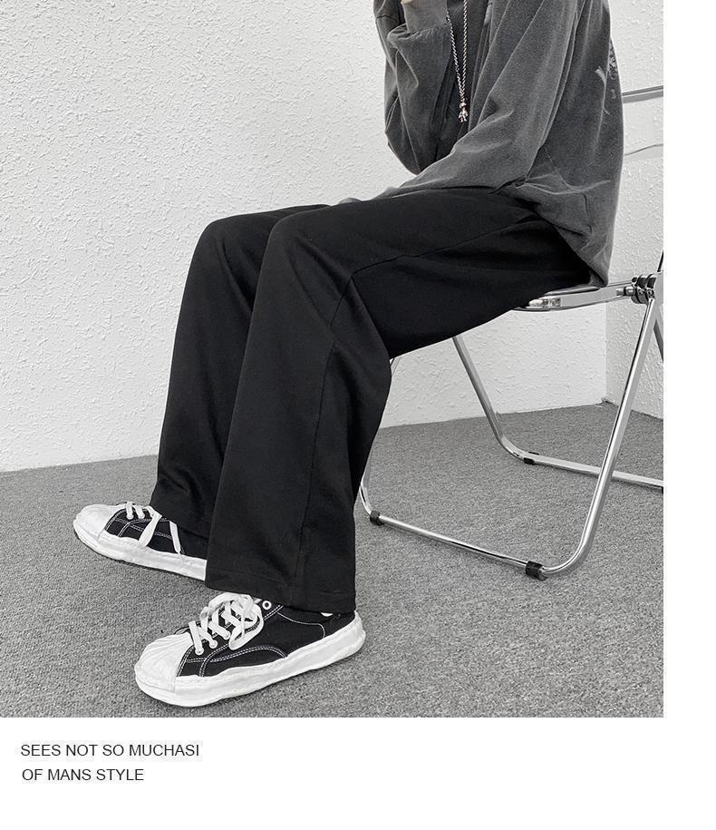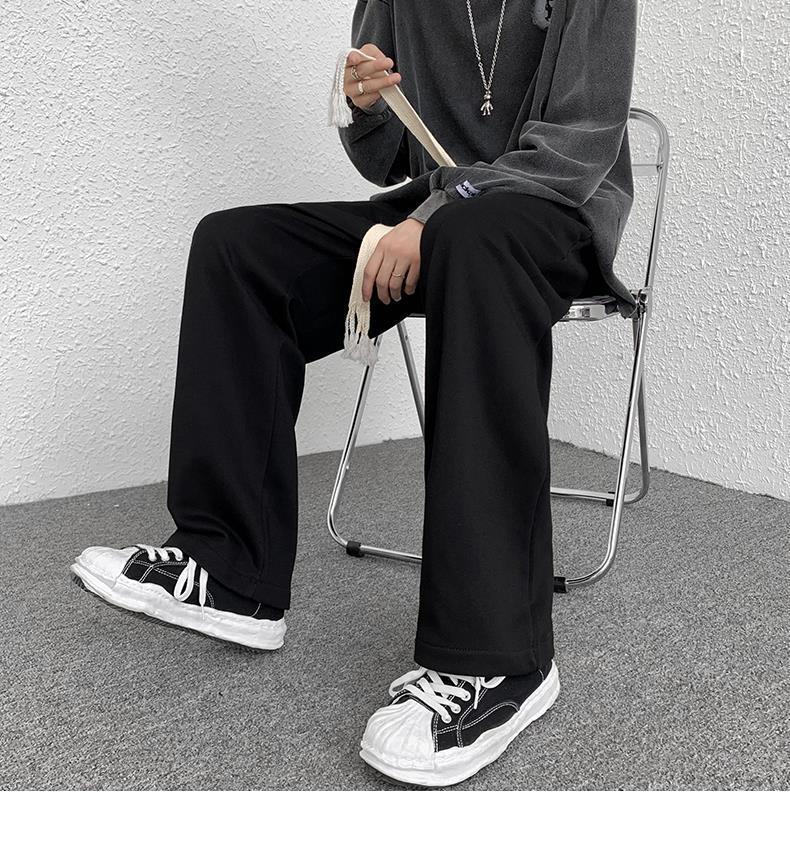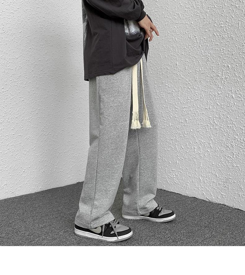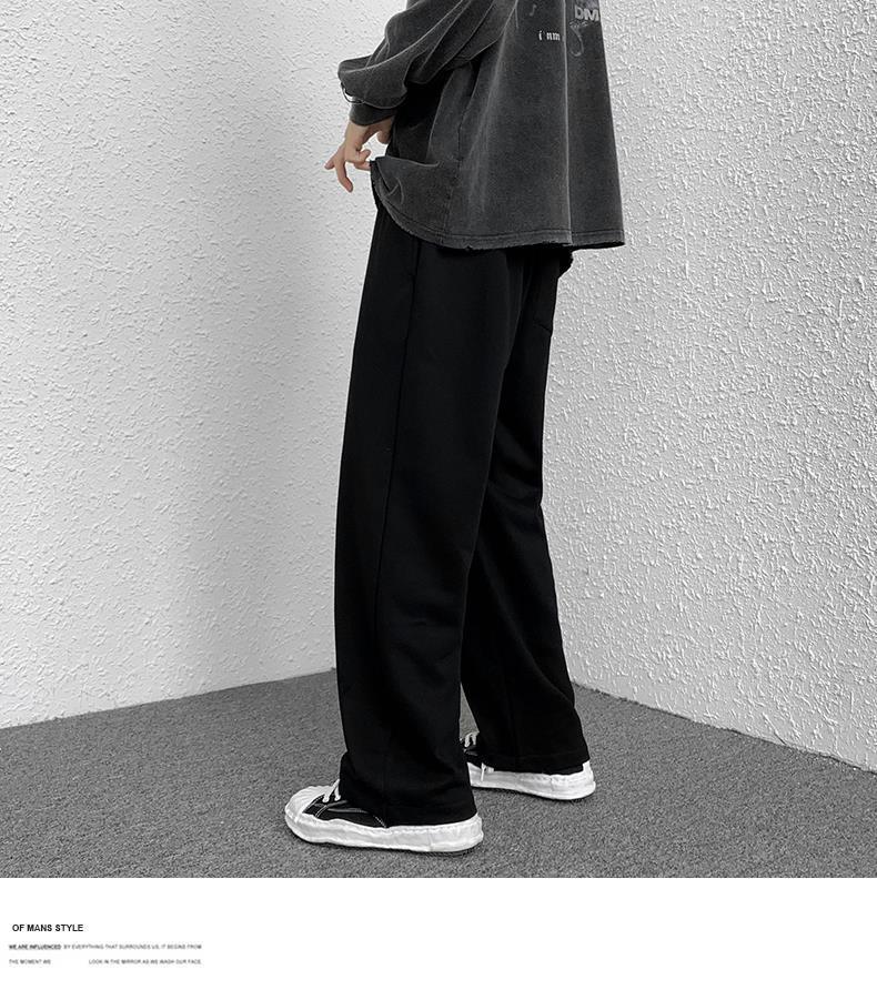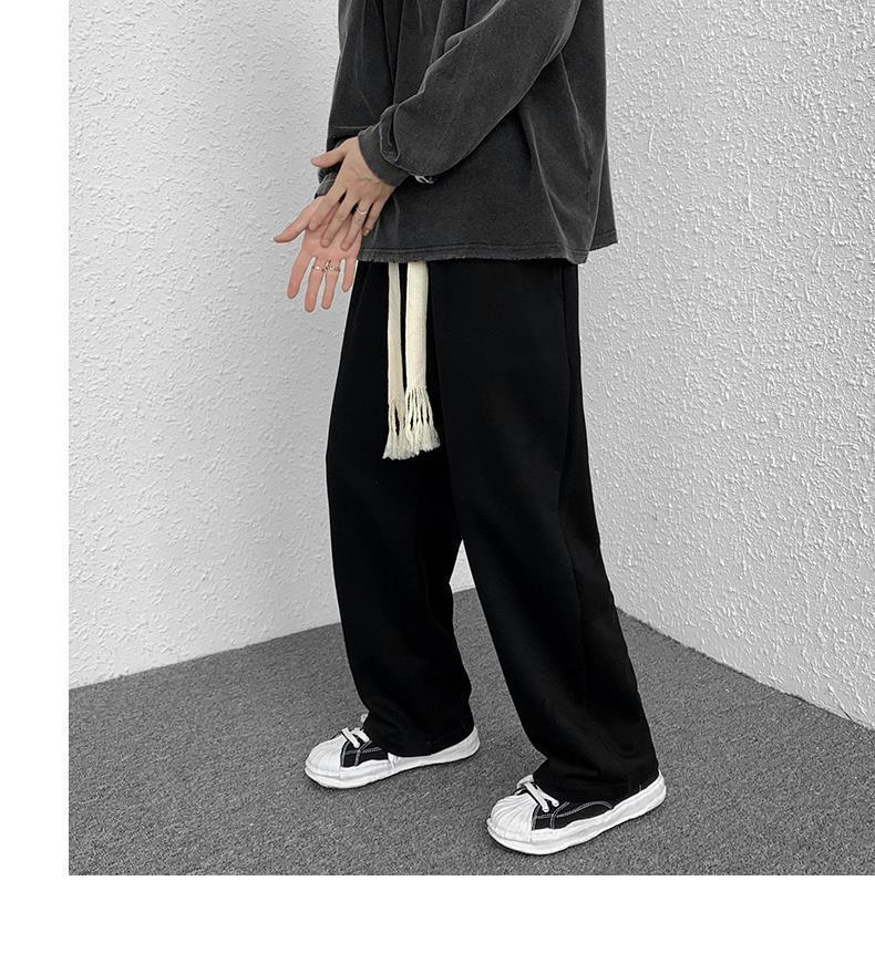 Calças de Moletom Masculinas Largas Retas Tecidas com Cordão Primavera e Verão High Street plus size Perna Larga Trendy Casual Cor Sólida