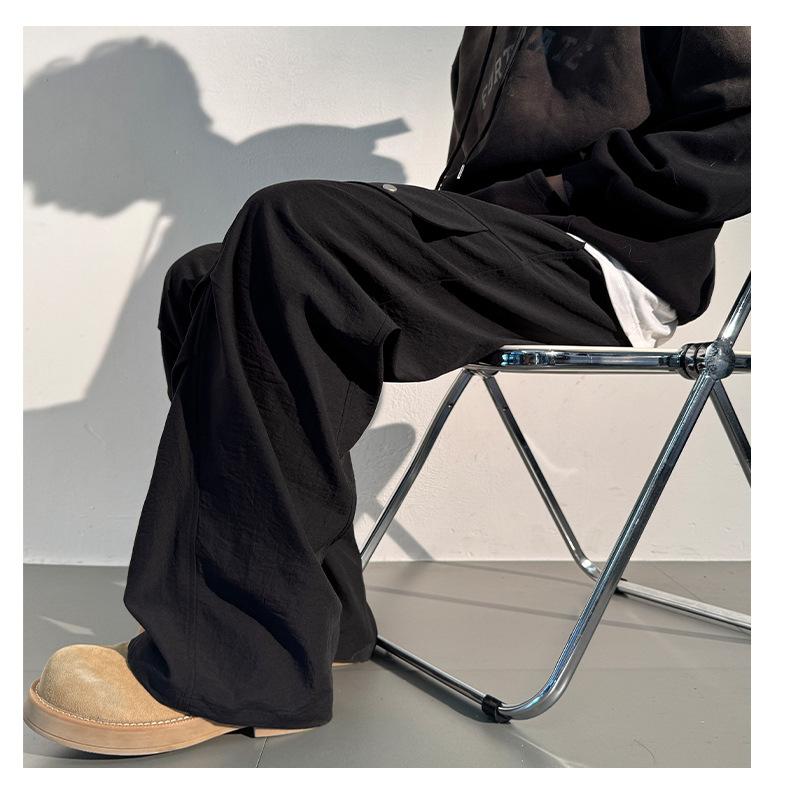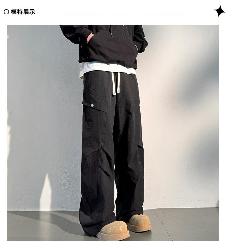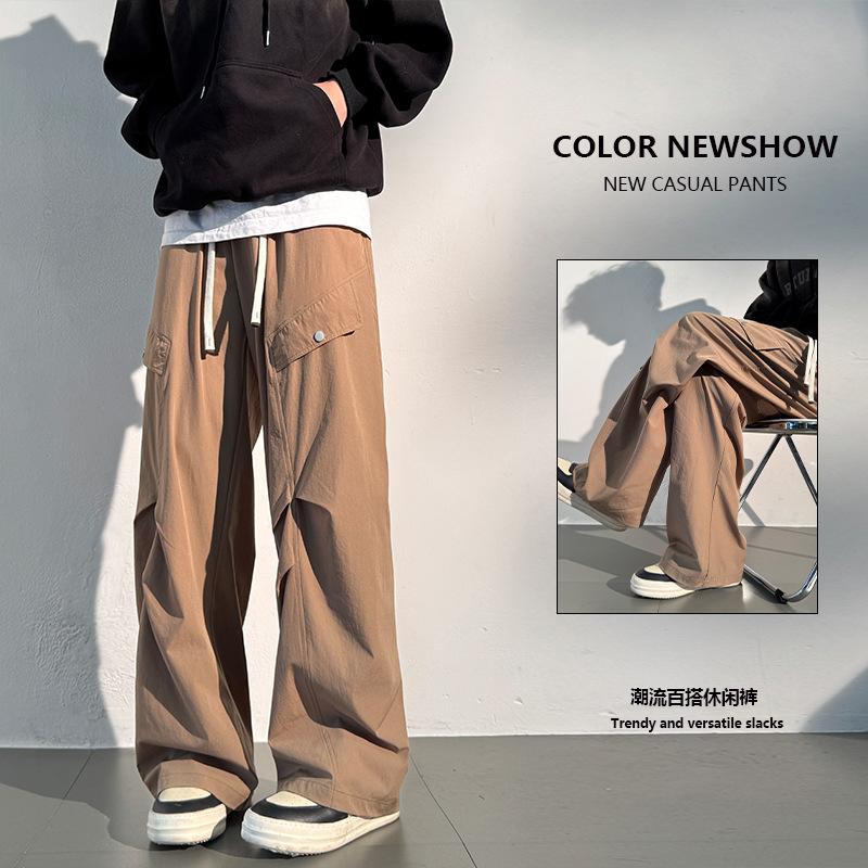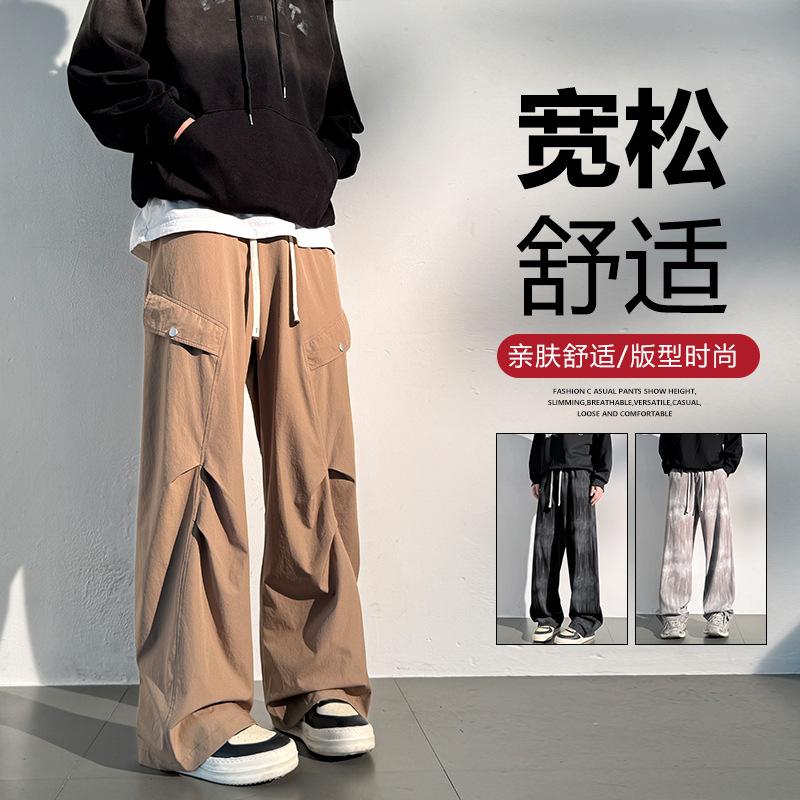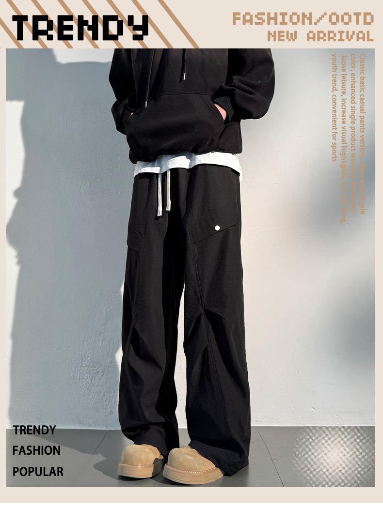 Compre Calças masculinas soltas retas e bonitas para todos os tipos de combinações, primavera e verão, calças pretas casuais da marca americana reta e da moda para homens no atacado no Joom.pro