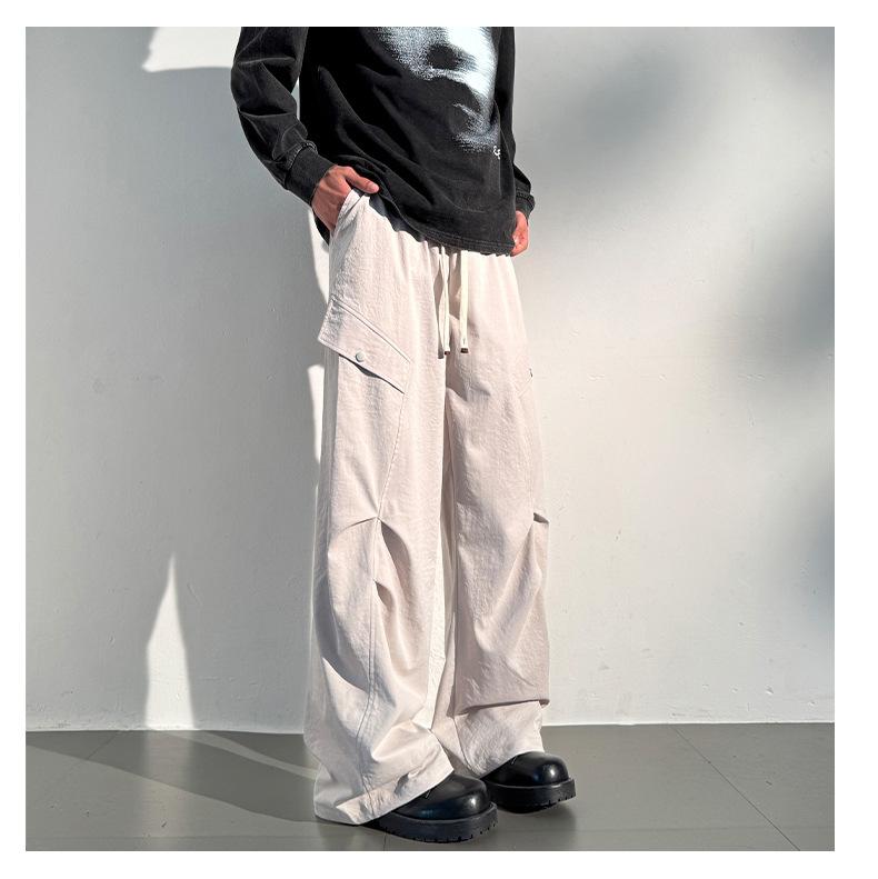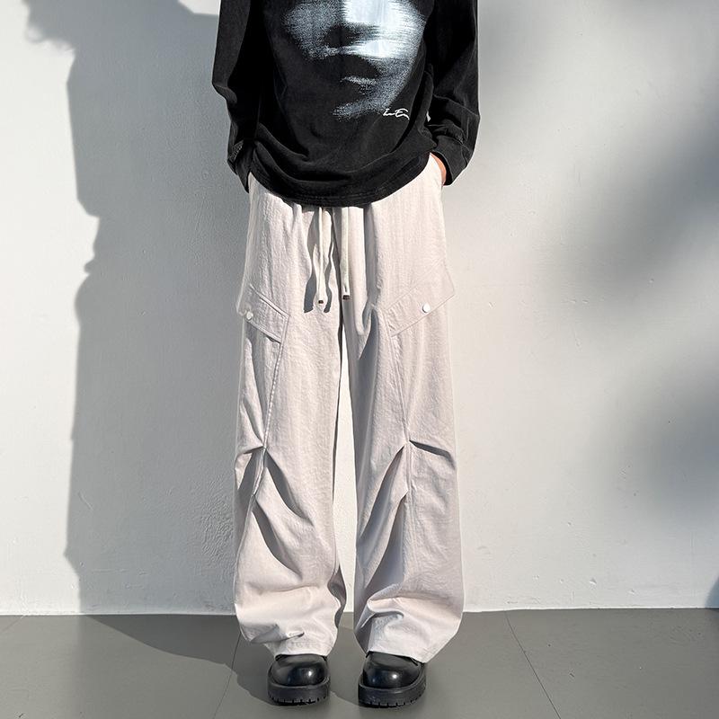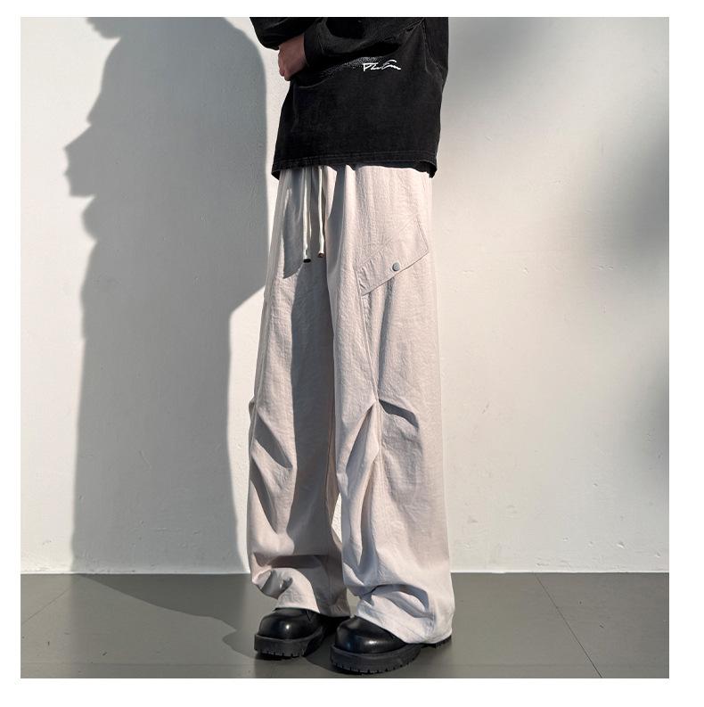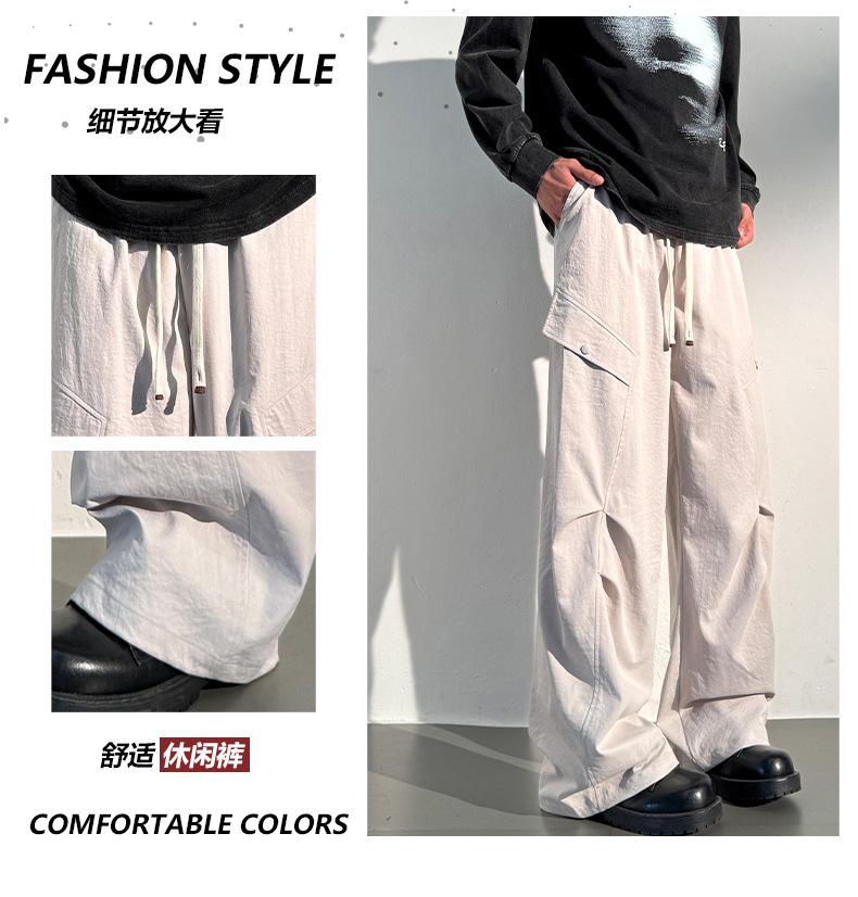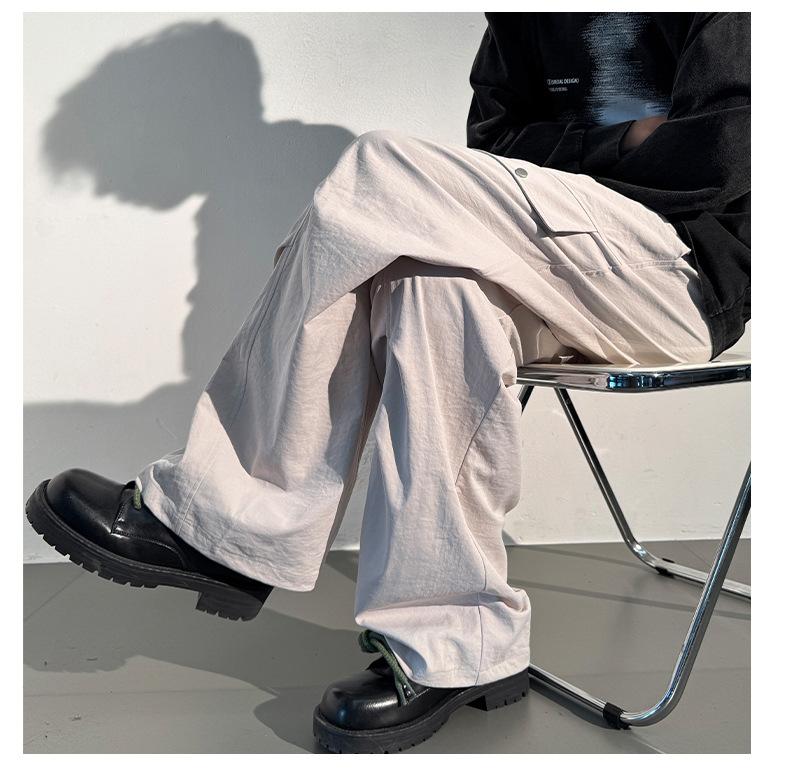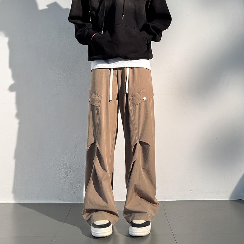 Compre Calças masculinas soltas retas e bonitas para todos os tipos de combinações, primavera e verão, calças pretas casuais da marca americana reta e da moda para homens no atacado no Joom.pro