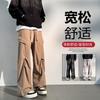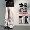 Calças masculinas soltas retas e bonitas para todos os tipos de combinações, primavera e verão, calças pretas casuais da marca americana reta e da moda para homens