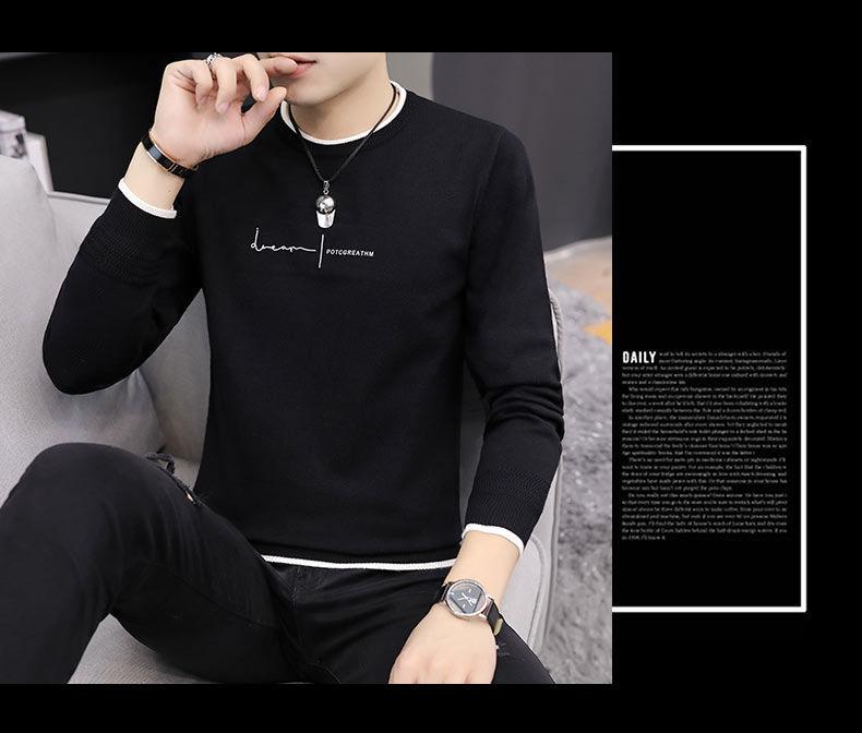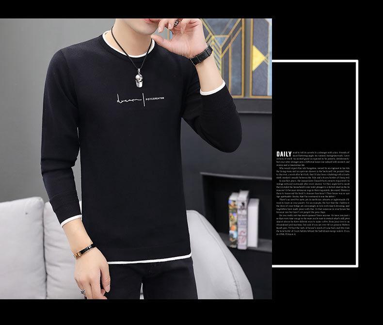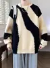 Suéter grosso forrado de lã branca para outono e inverno masculino, suéter estilo coreano, suéter quente, camisa básica masculina bonita, moderna
