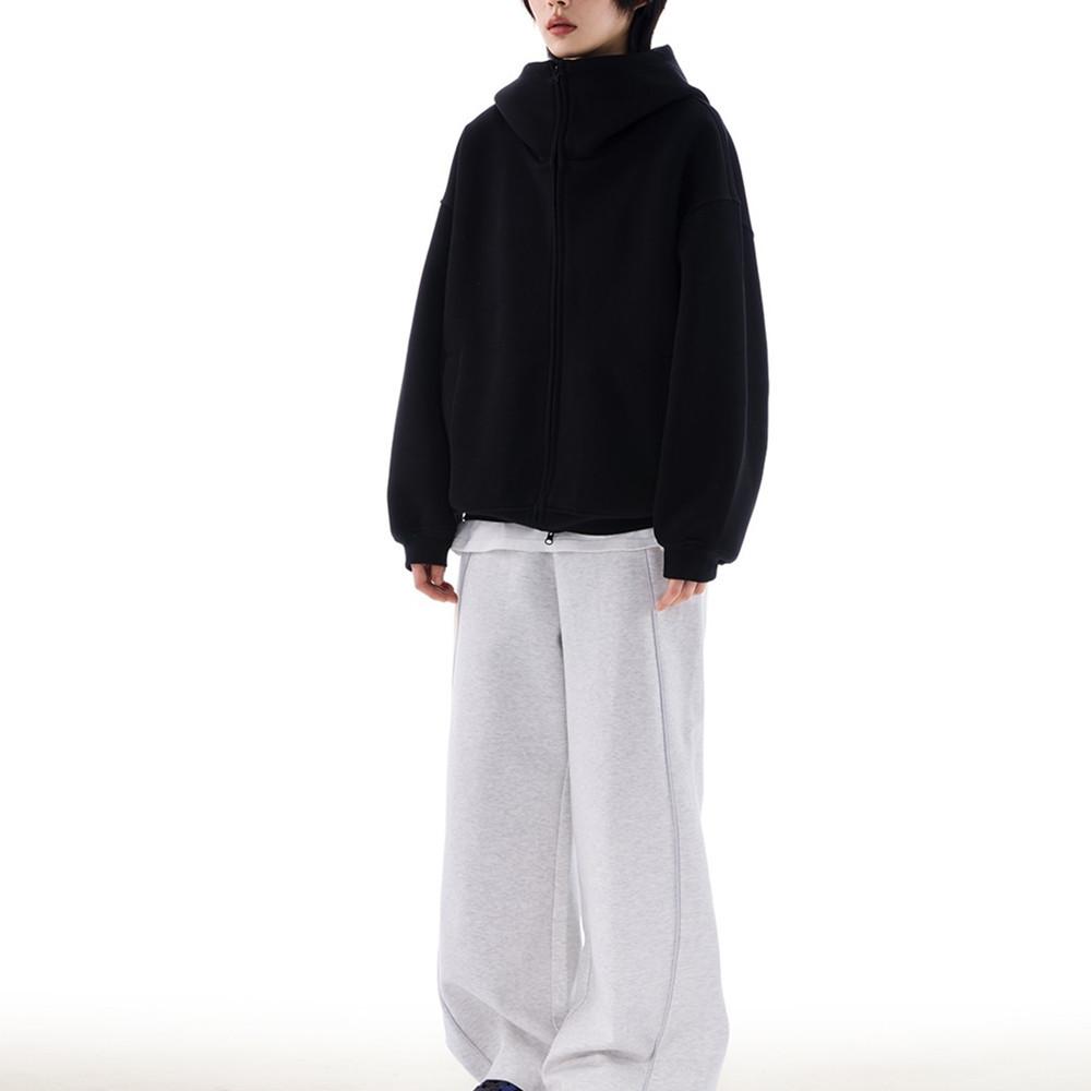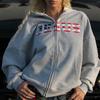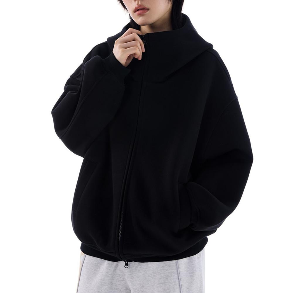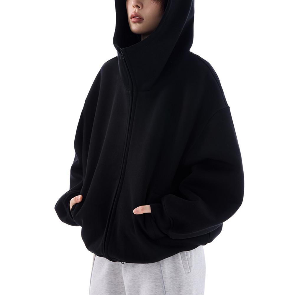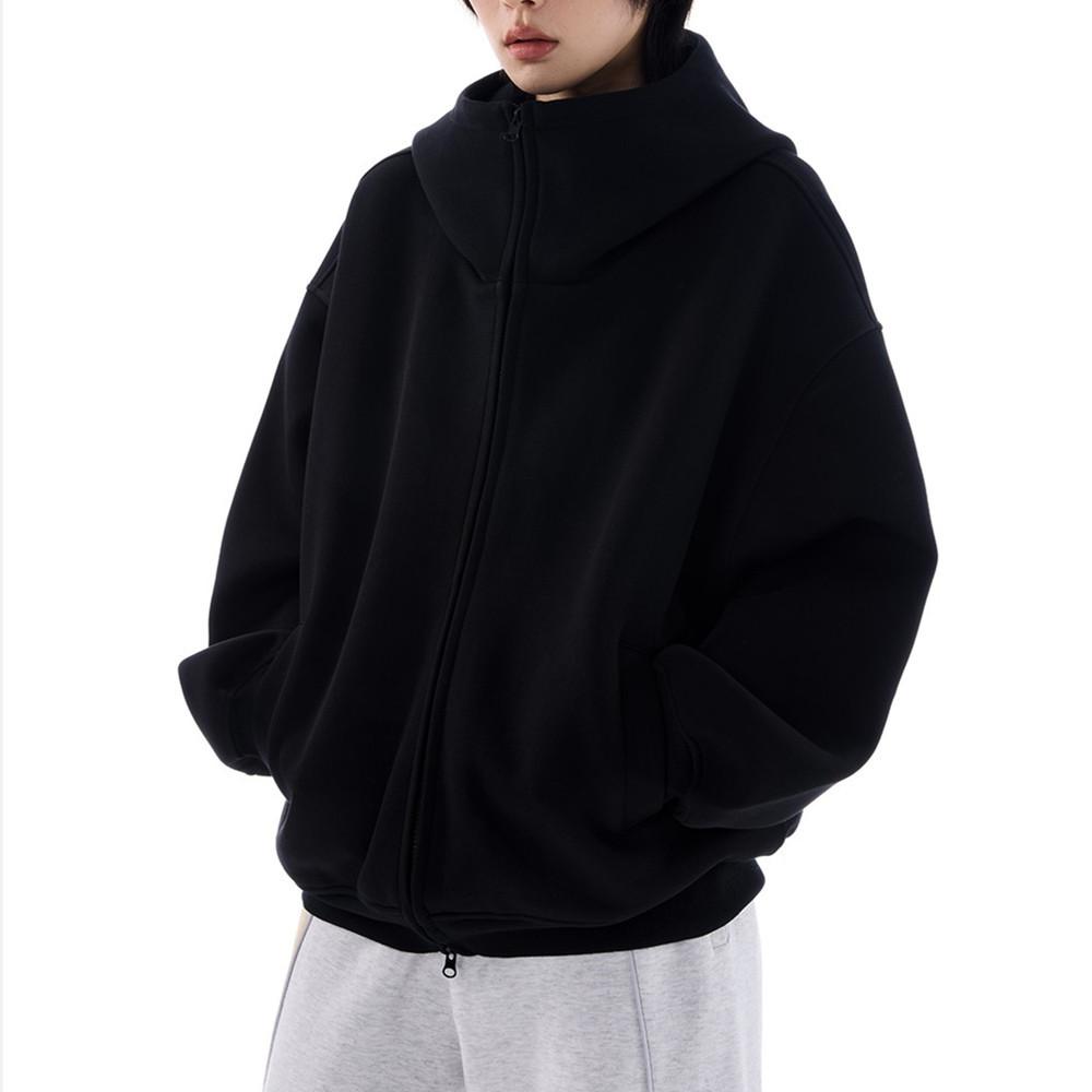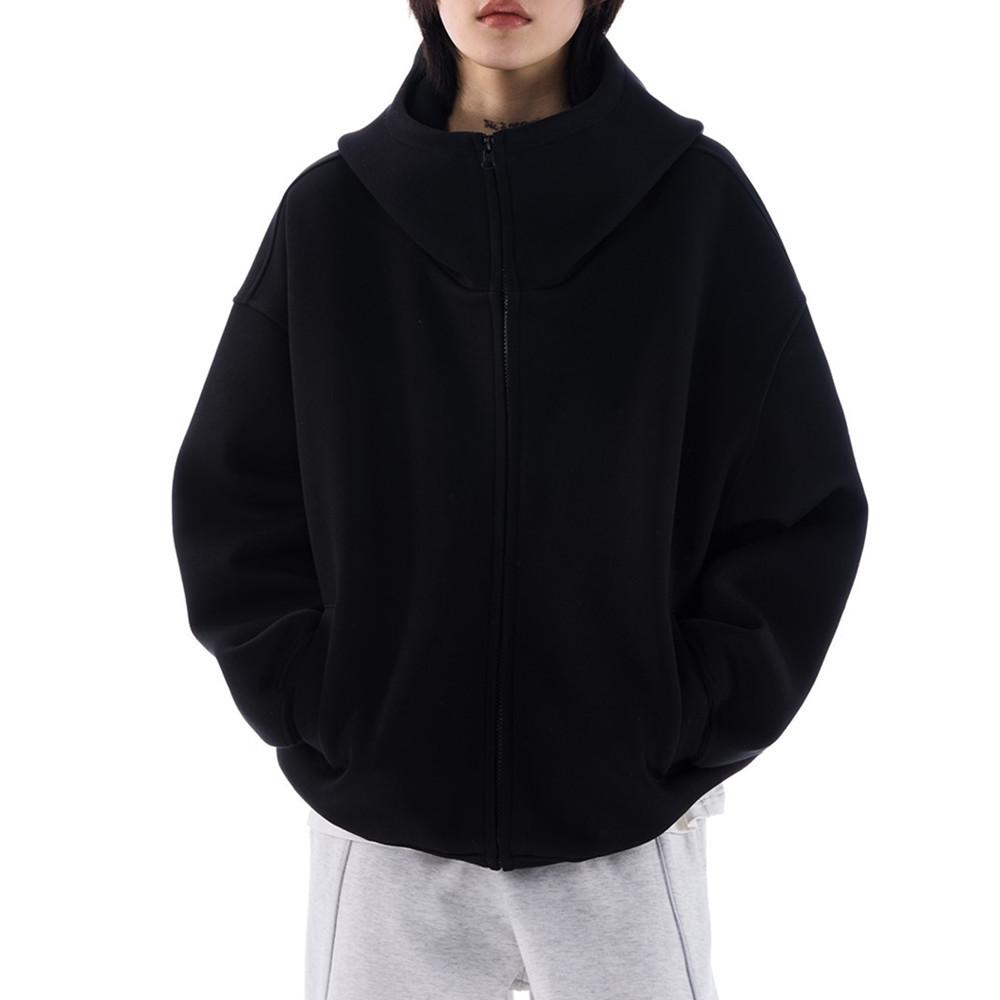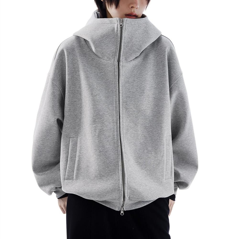 Casaco de suéter cinza com capuz de silhueta americana para homens e mulheres, outono e inverno, novo cardigan solto com forro de lã e camada de ar pesada, maré