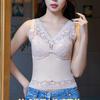 802# Renda Costura V-Neck Camisole Colete Feminino Primavera e Verão Slim Fit Almofada Interna no Peito Puro Curto Bottoming Top