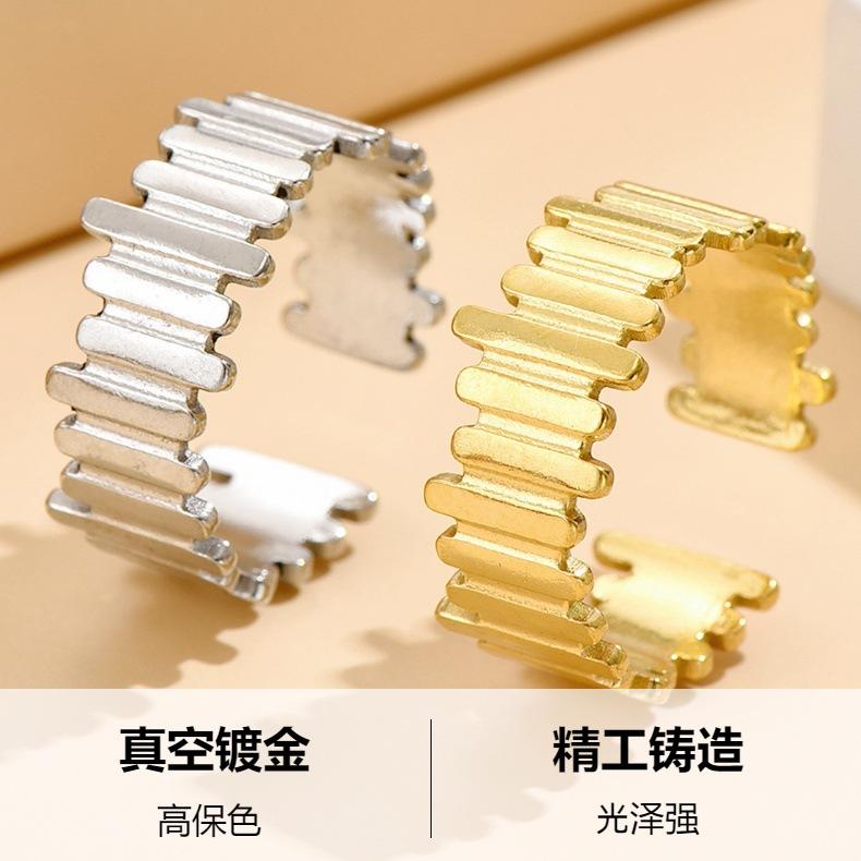 Anel geométrico irregular de aço titânio estilo ins frio europeu e americano aberto aço inoxidável anel de casal masculino e feminino transfronteiriço