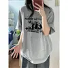 Camiseta feminina de manga curta estilo americano 100% algodão puro, design de verão, casual, solta, cinza, top masculino