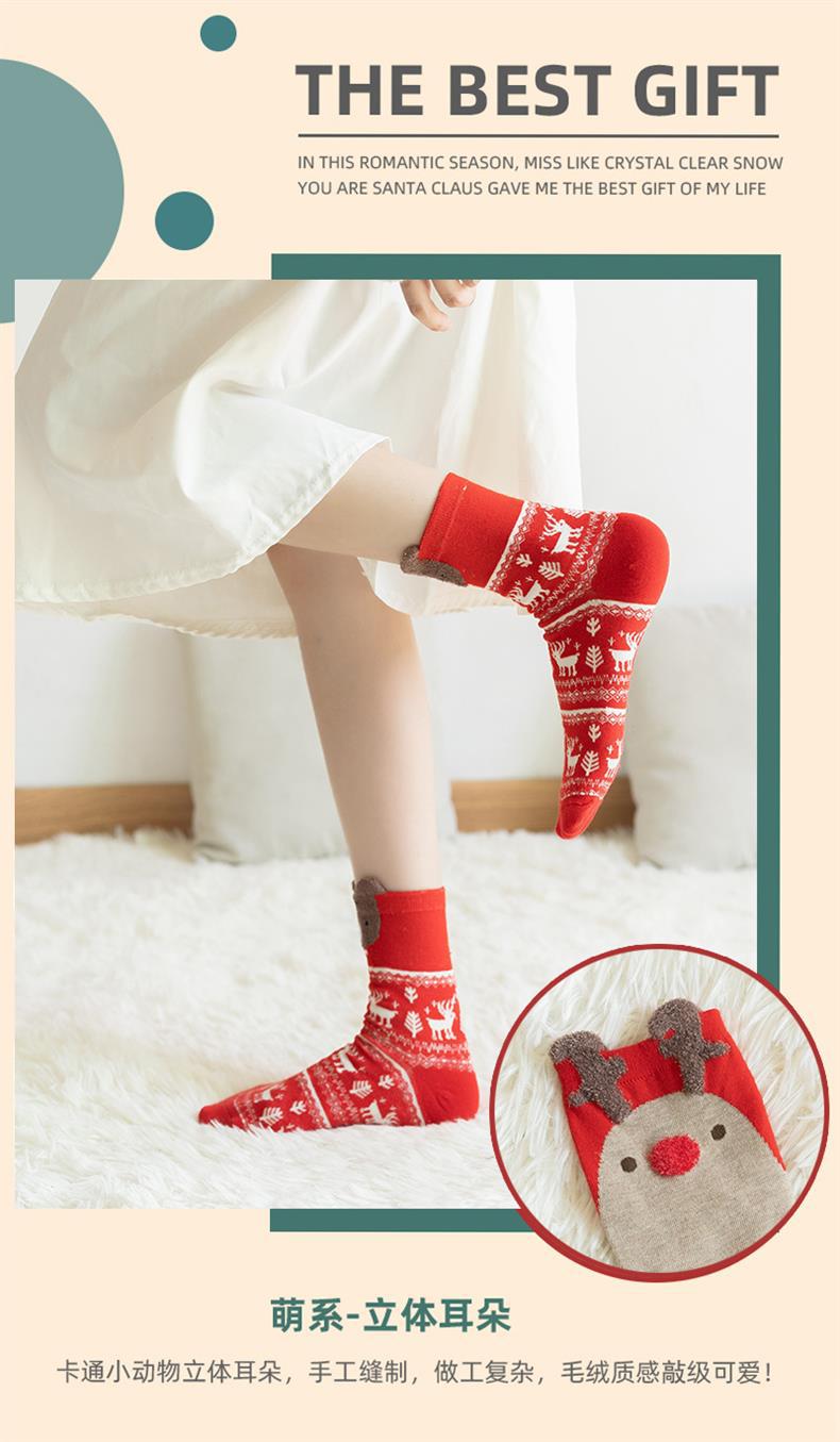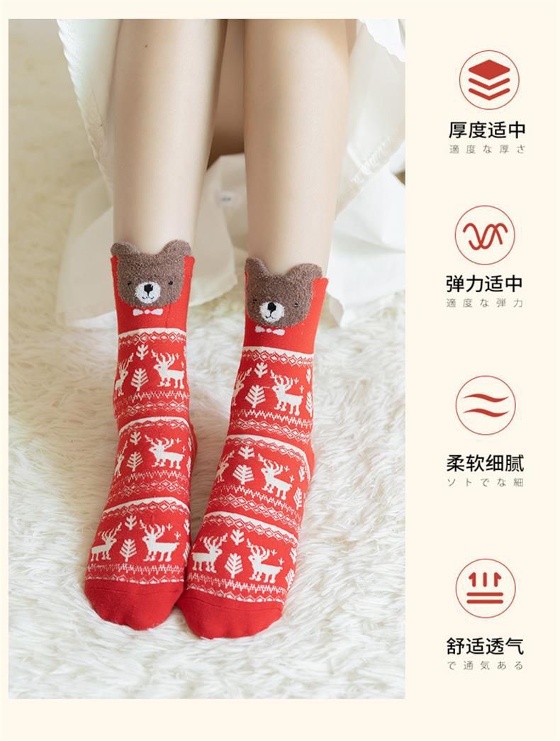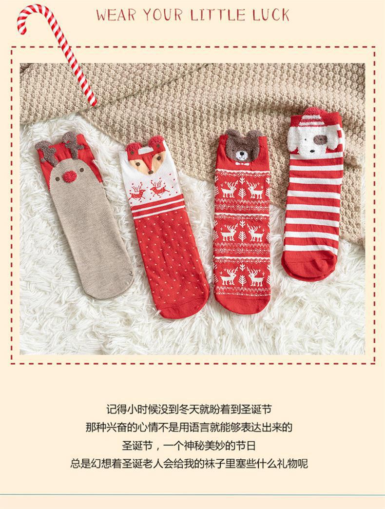 Meias de Natal femininas outono e inverno meias femininas festivas meias japonesas de algodão tridimensional desenho animado alce meias femininas transfronteiriças