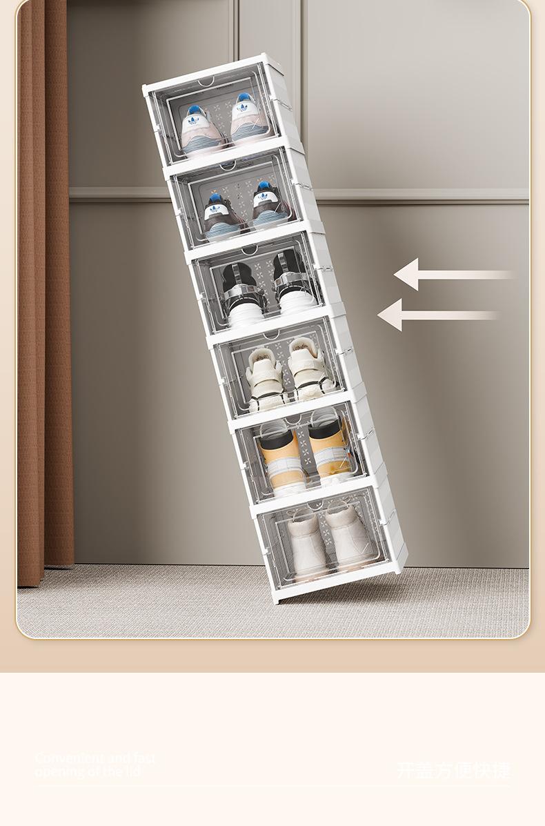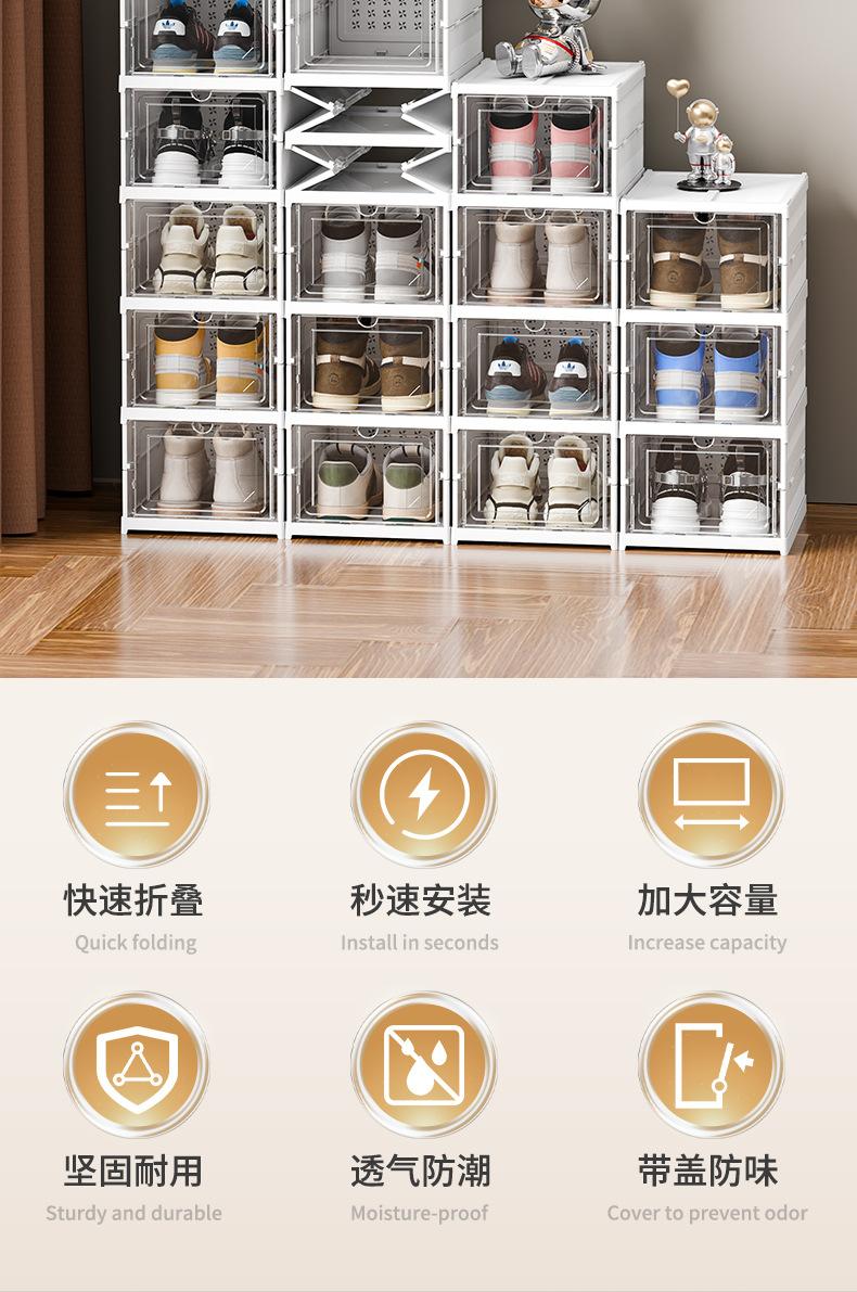 Caixa de Sapatos Dobrável Transparente Espessada de Múltiplas Especificações Prateleira de Sapatos Multicamadas Robusta à Prova de Umidade à Prova de Poeira Armário de Sapatos Sem Instalação Armazenamento de Sapatos