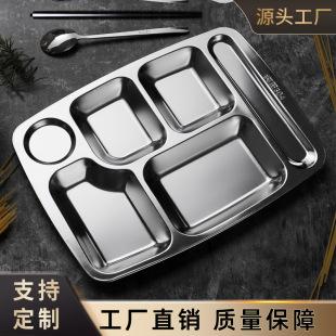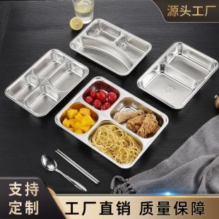 | 304 aço inoxidável prato de jantar grade fast food prato cantina jardim de infância grande adulto prato de jantar estudante crianças separado talheres |