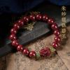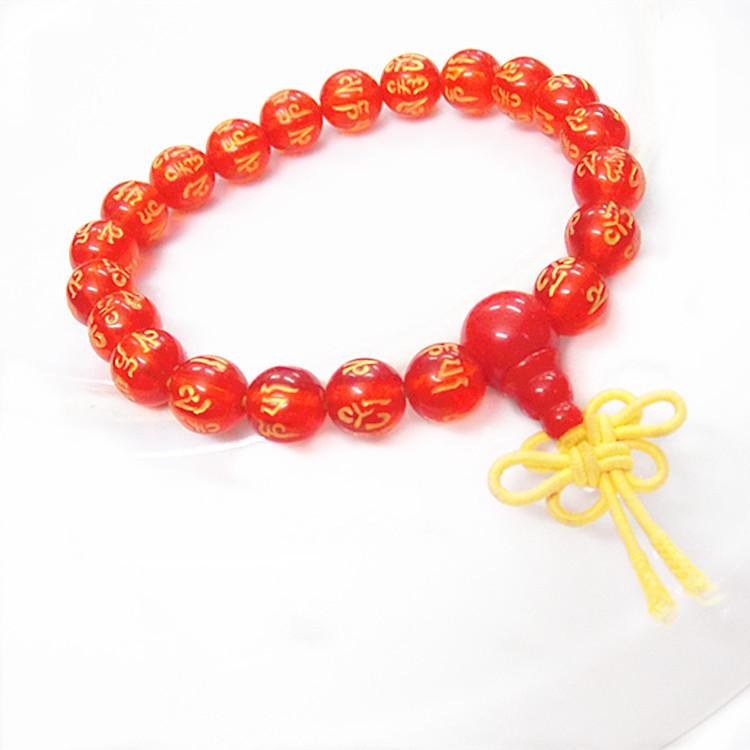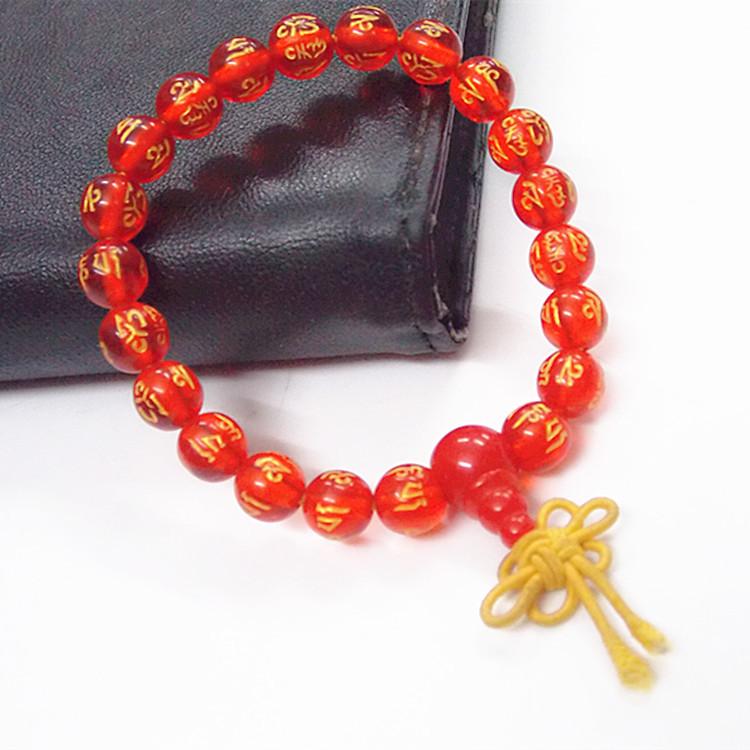 Imitação Cristal Vermelho 8mm contas mantra seis palavras pulseira nó rico tridimensional ágata vermelha contas Buda douradas pulseira sânscrita