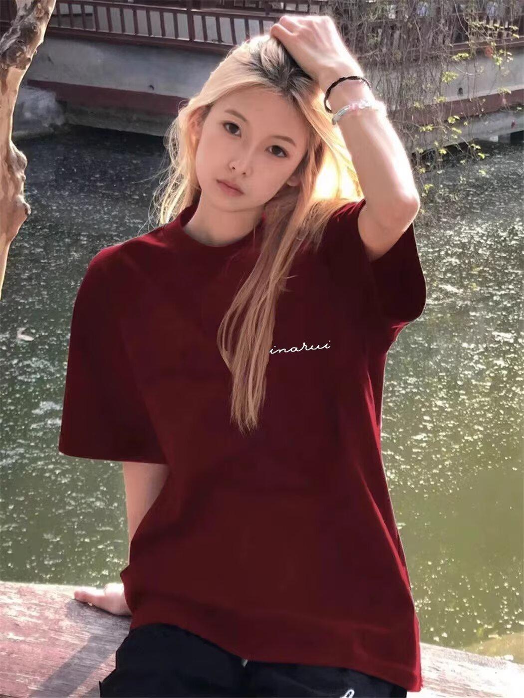 Commuter Novo 2025 Verão Manga curta Meia manga Estilo americano Marca da moda Camiseta de manga curta Pesado Solto Casual Masculino e Feminino Top