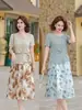 Terno esportivo feminino 2025 primavera nova moda coreana redutora de idade estilo ocidental emagrecimento casual manga curta duas peças marca de moda