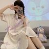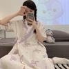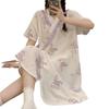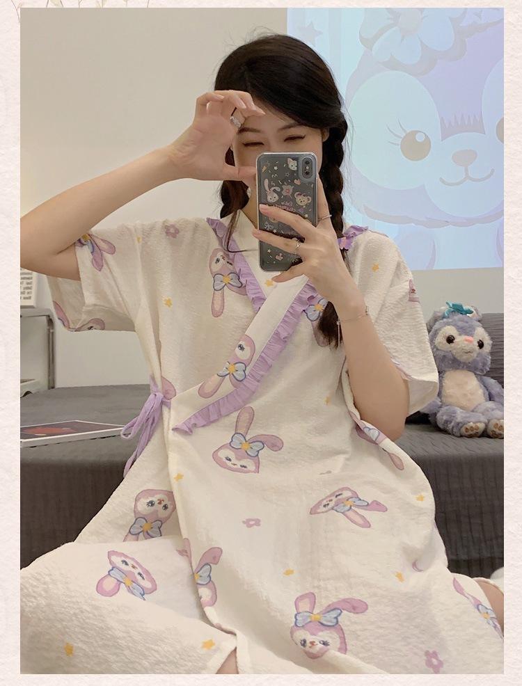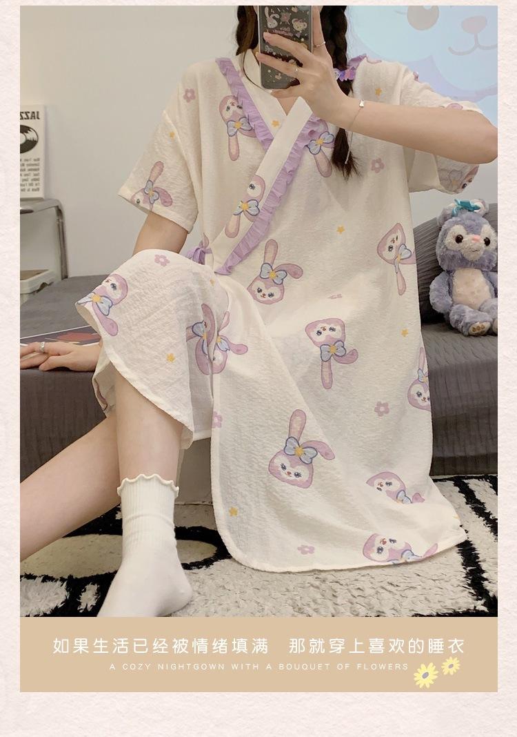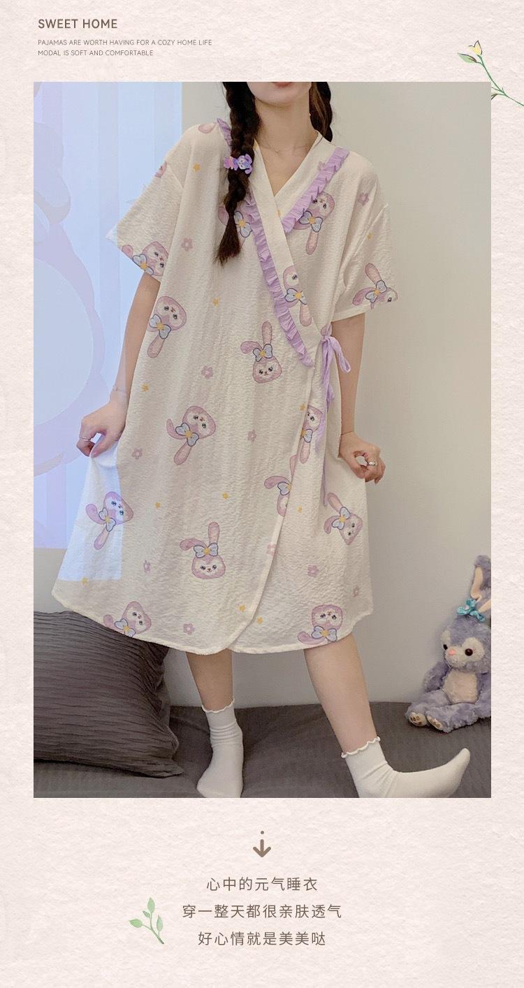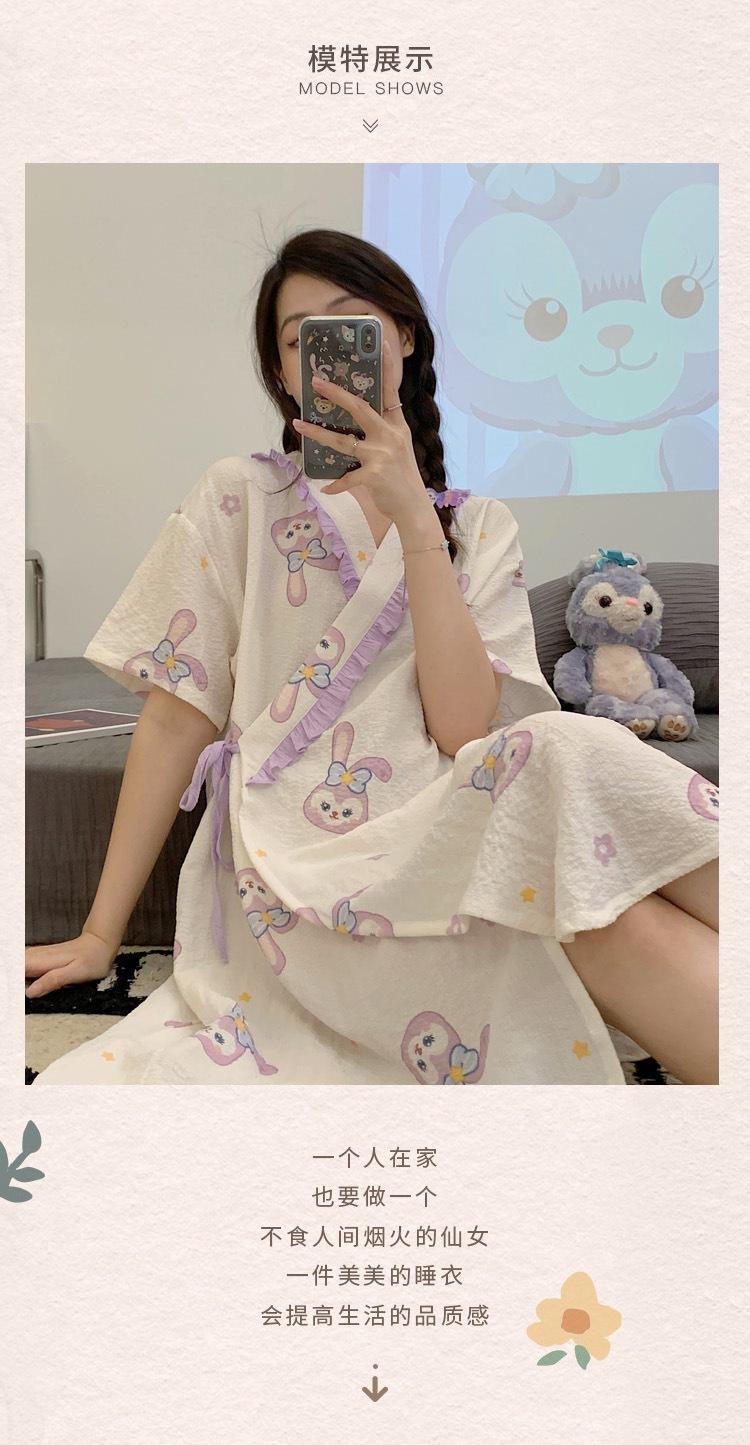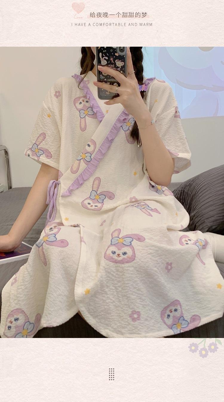 (em estoque) Camisola de Amamentação de Manga Curta em Crepe Bolha Tecido Luna para Gestantes