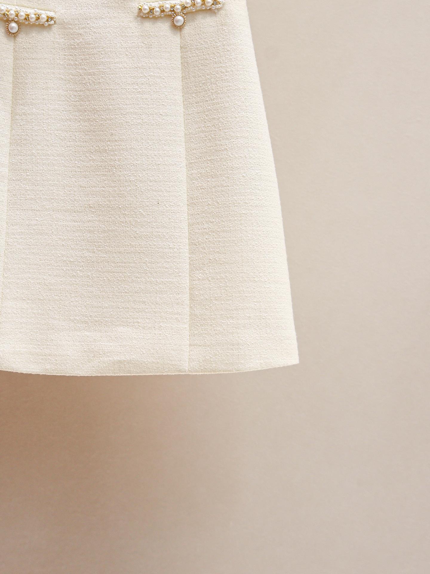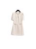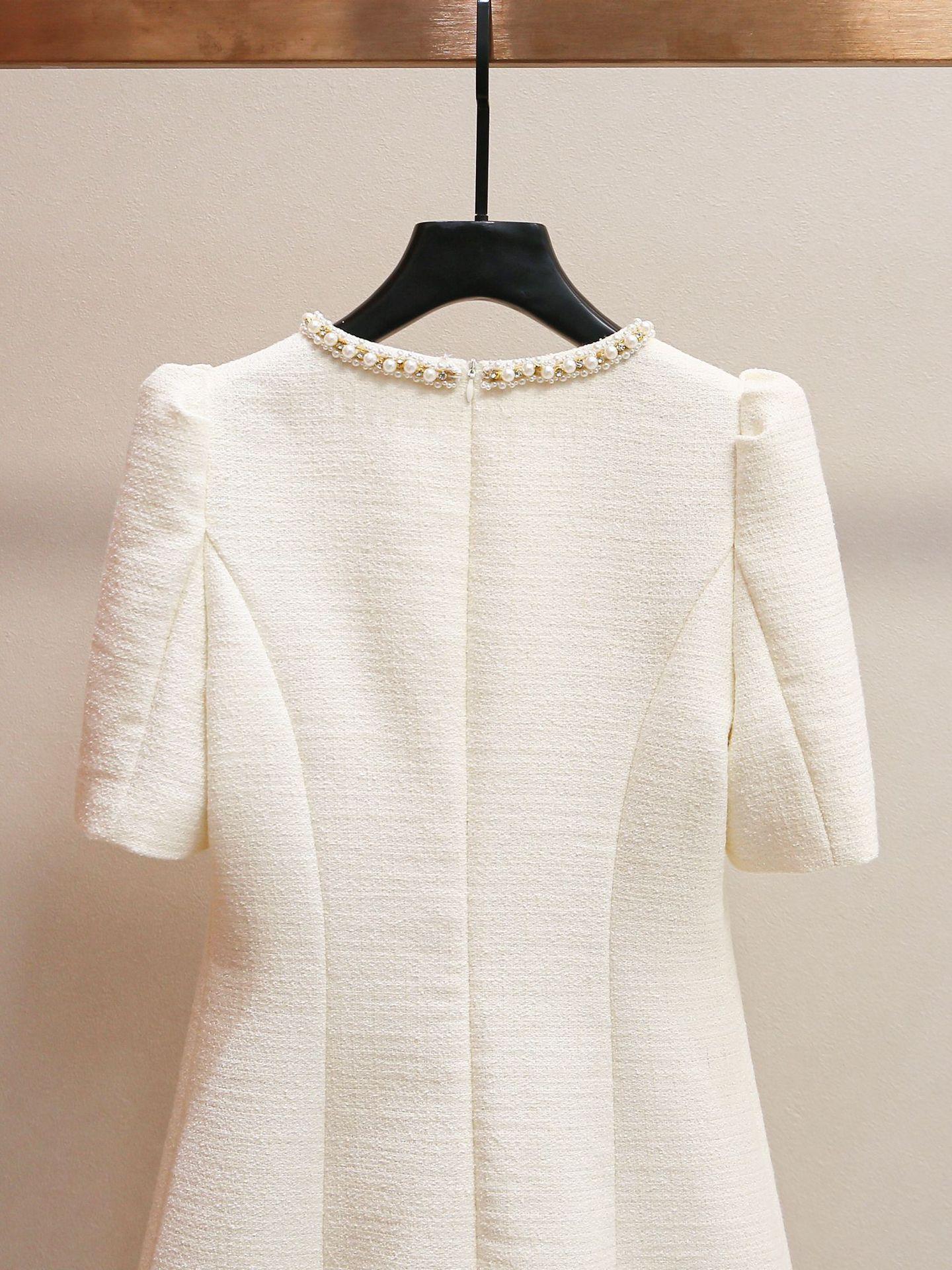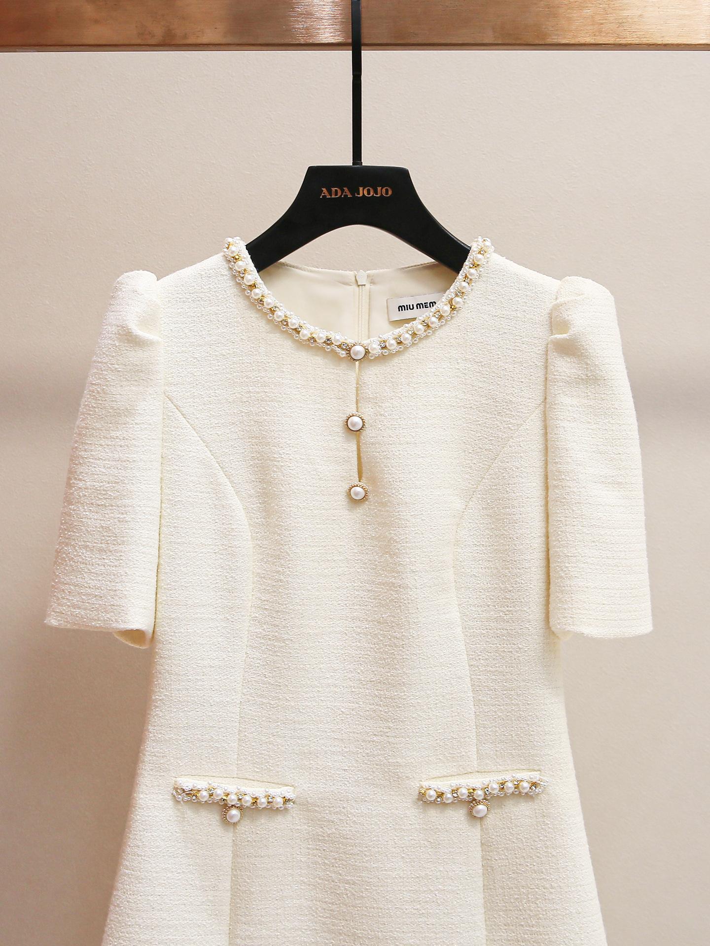 Shenzhen Nanyou Vestido Feminino Elegante Francês Simples Estilo Pequena Fragrância Gola Redonda com Miçangas Manga Bufante Cintura para Mulheres