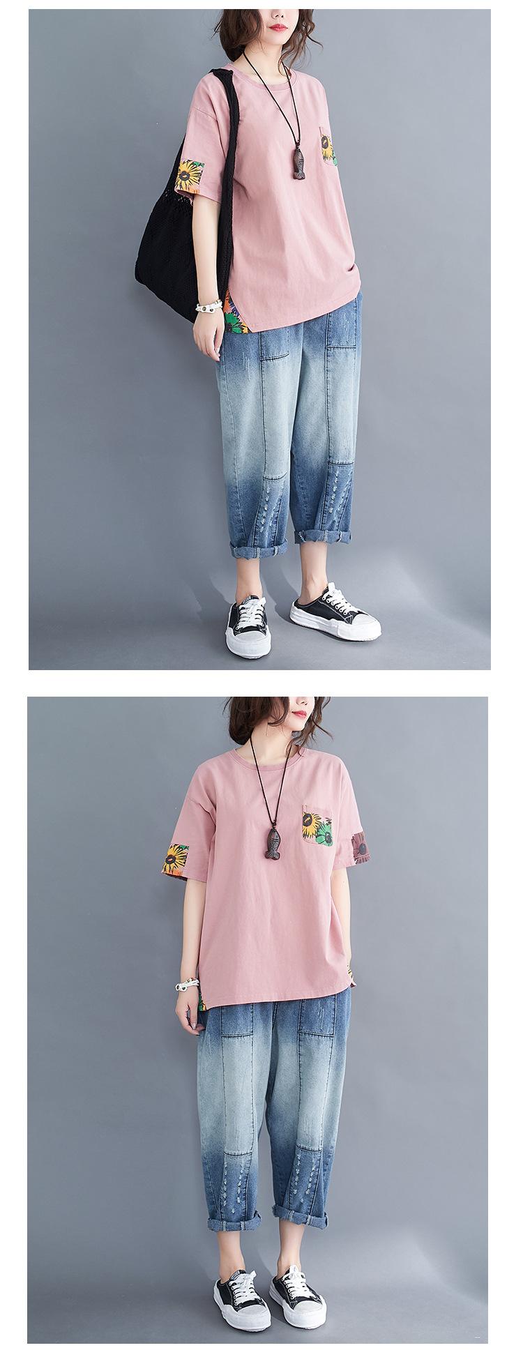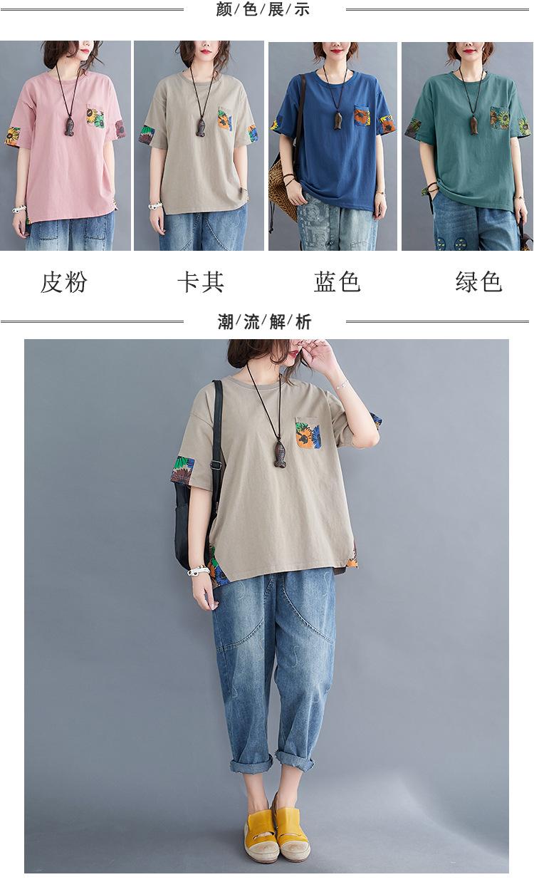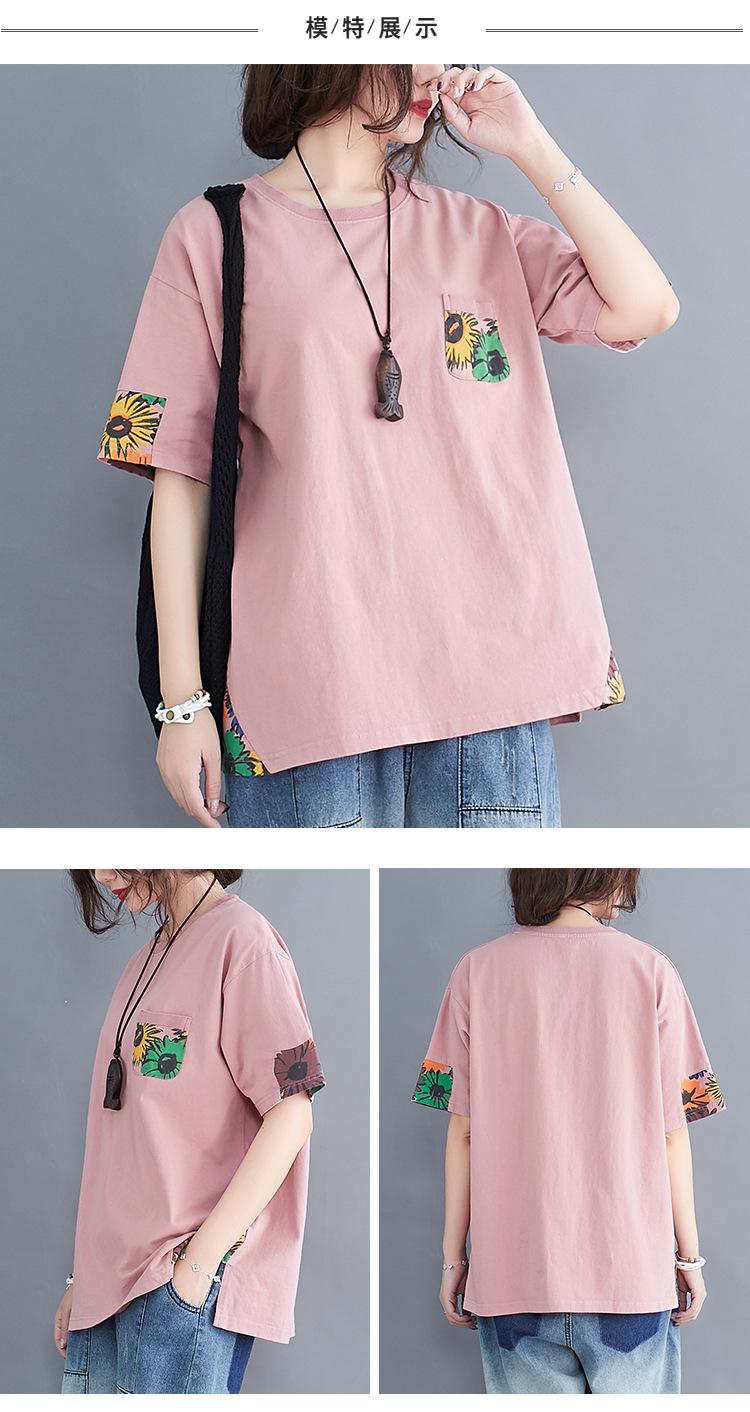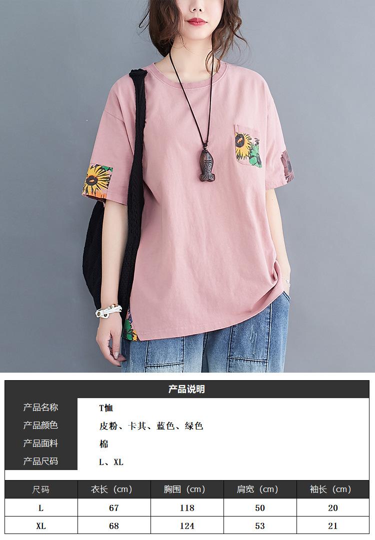 Compre 2025 Verão menina gordinha All-match Camiseta de manga curta feminina solta plus size estampada gola redonda manga curta casual top no atacado no Joom.pro