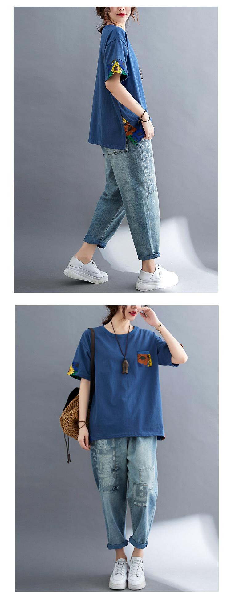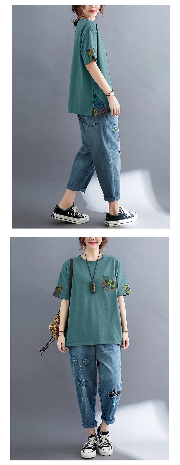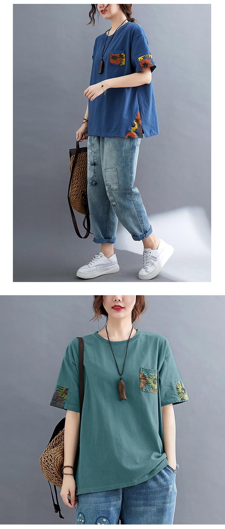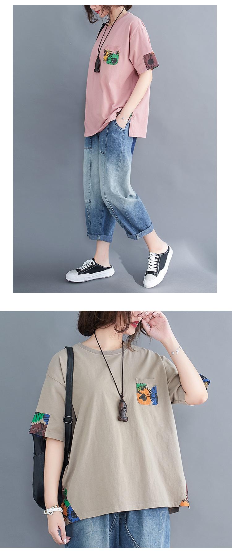 Compre 2025 Verão menina gordinha All-match Camiseta de manga curta feminina solta plus size estampada gola redonda manga curta casual top no atacado no Joom.pro