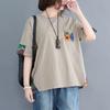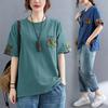 2025 Verão menina gordinha All-match Camiseta de manga curta feminina solta plus size estampada gola redonda manga curta casual top
