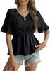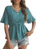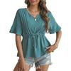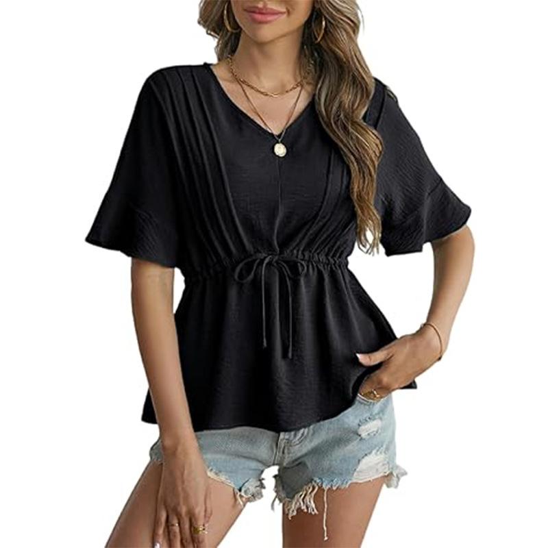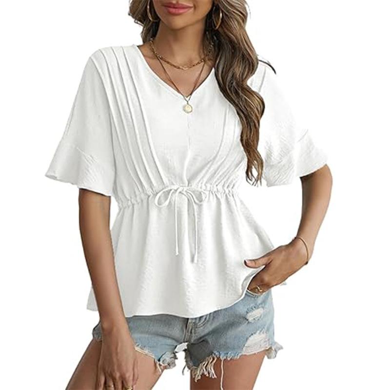 Amazon 2025 Verão Novo Europeu e Americano Cross-border Collar V-neck Casual Manga curta Moda Babados Frente Lace-up Camisa