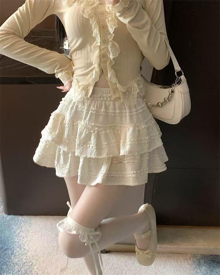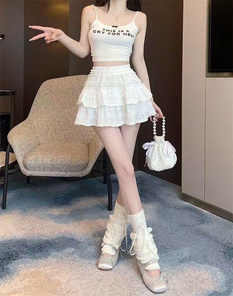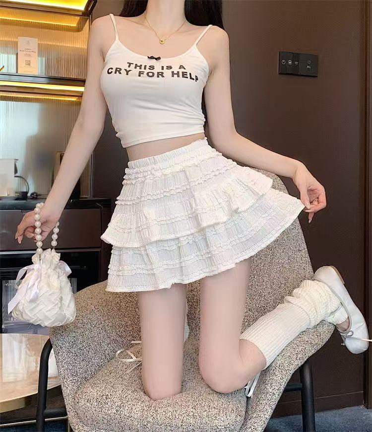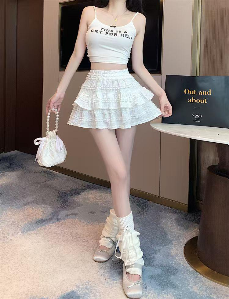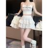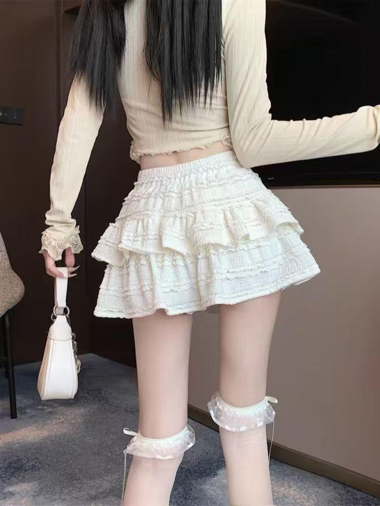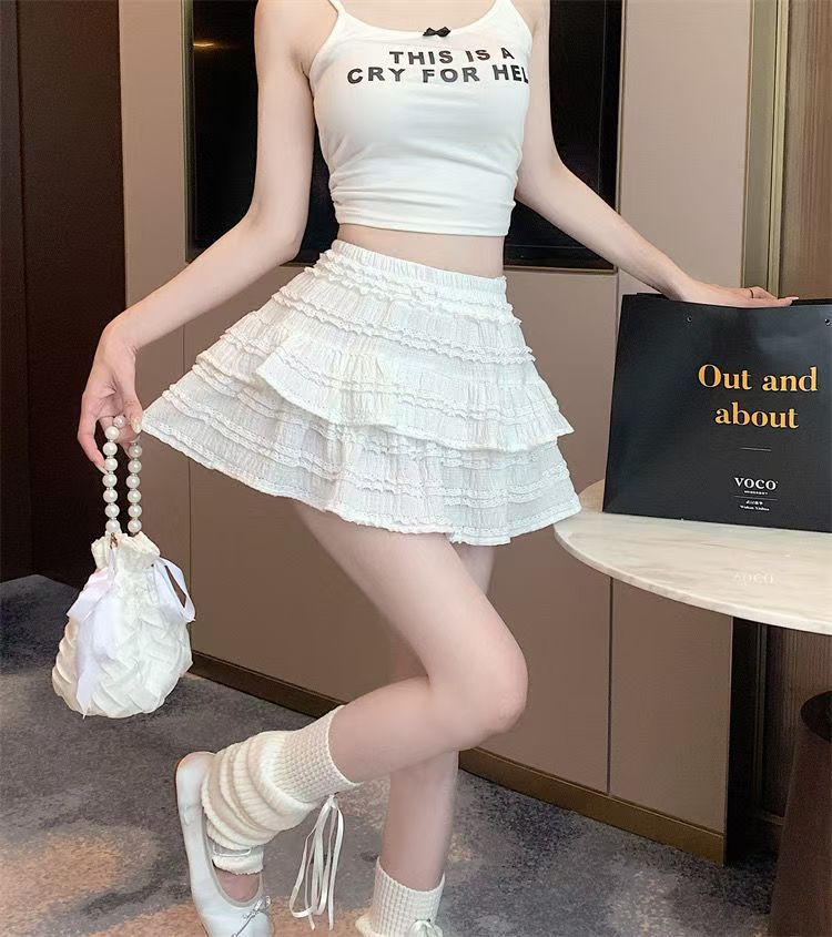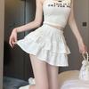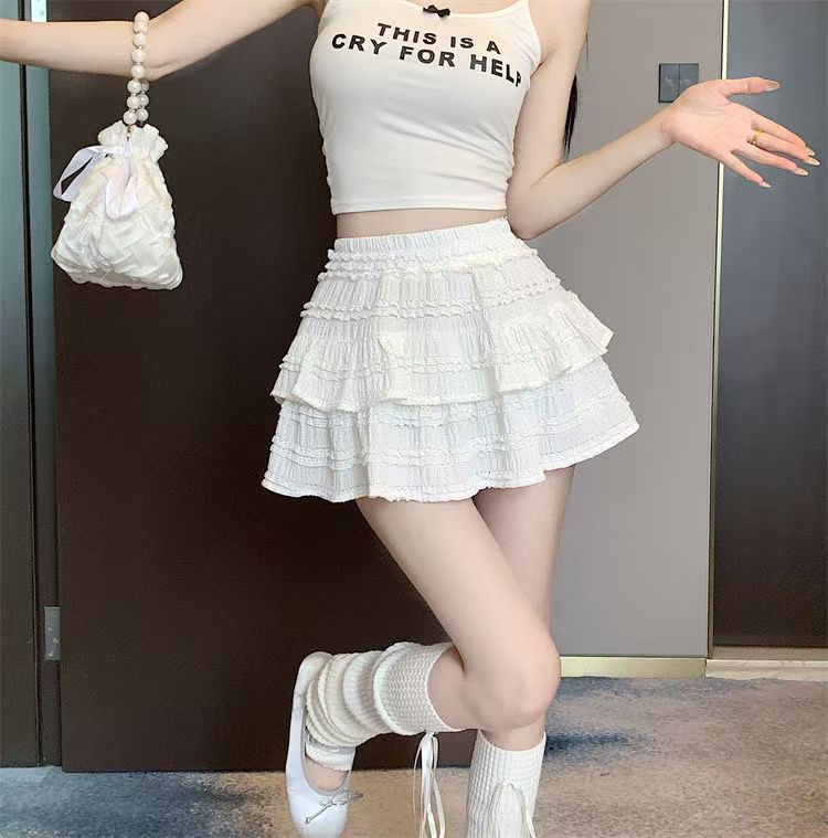 Saia de bolo branco saia feminina verão nova cintura alta A- linha curta renda balé saia inchada