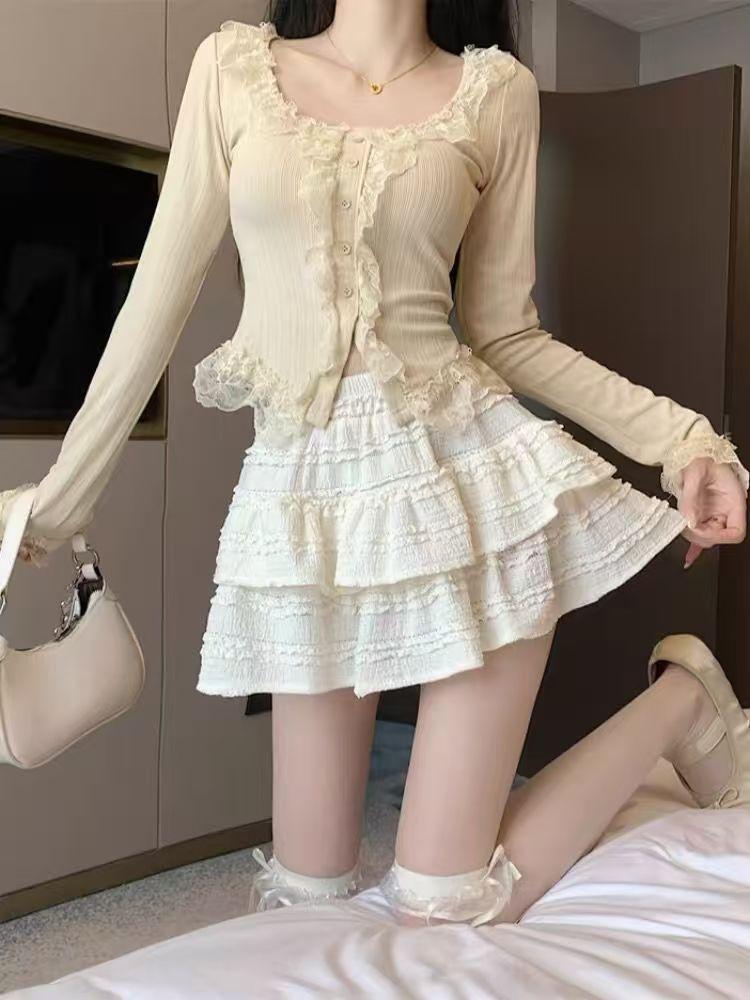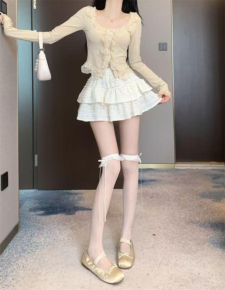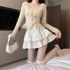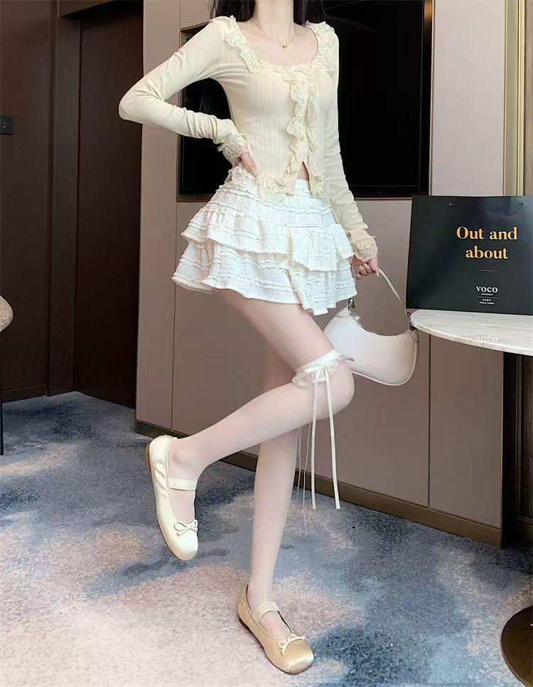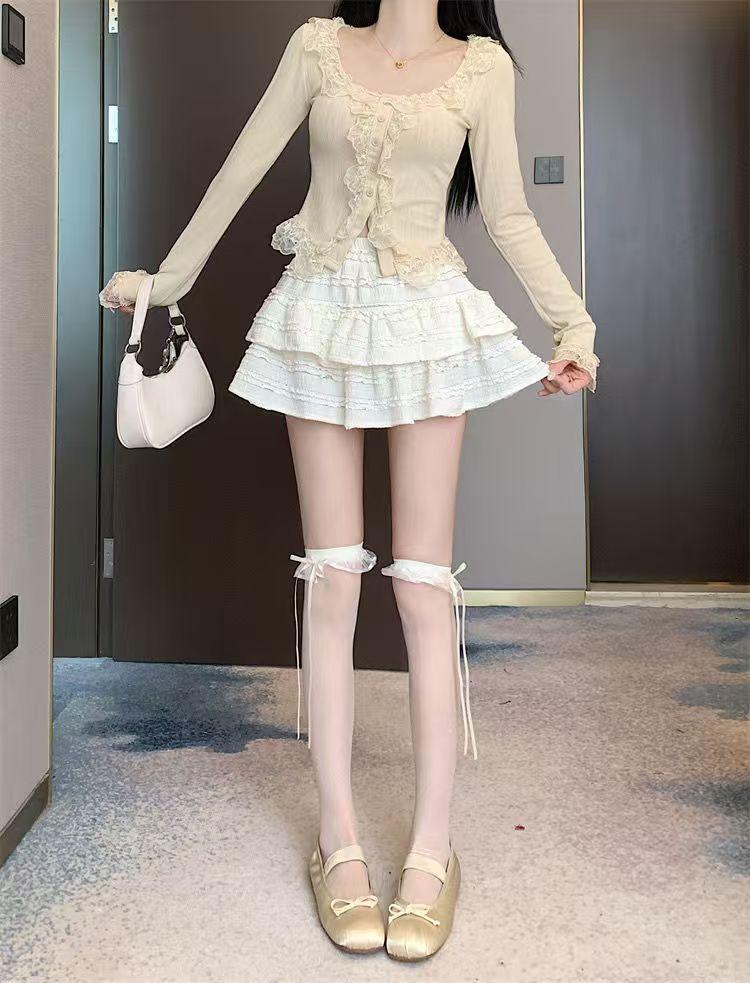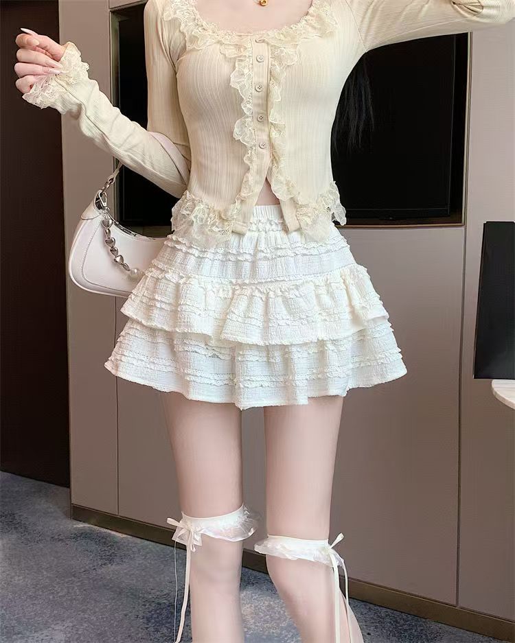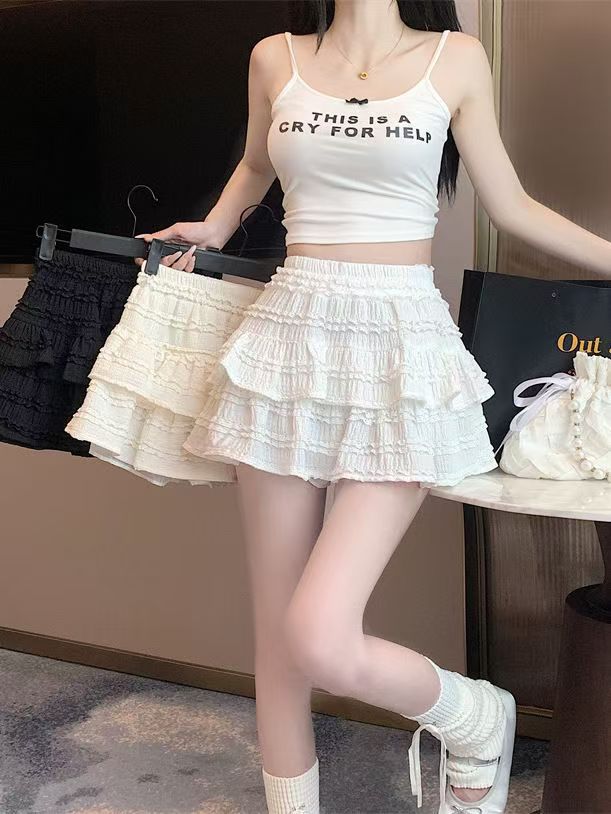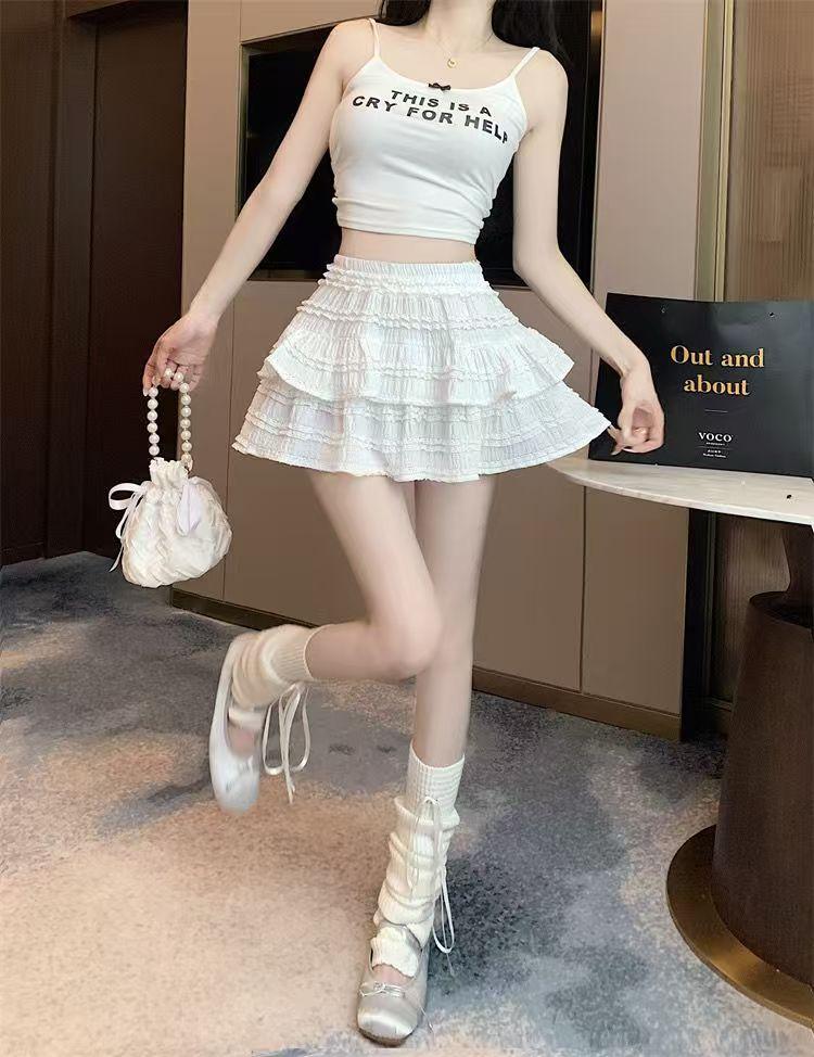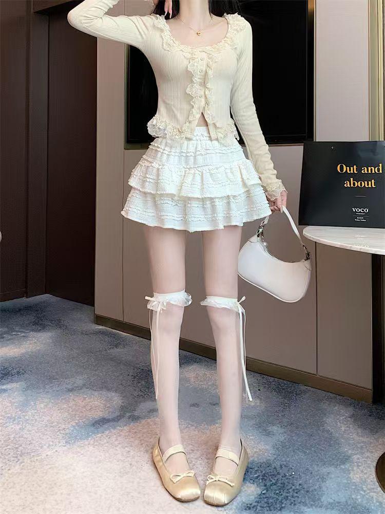 Saia de bolo branco saia feminina verão nova cintura alta A- linha curta renda balé saia inchada