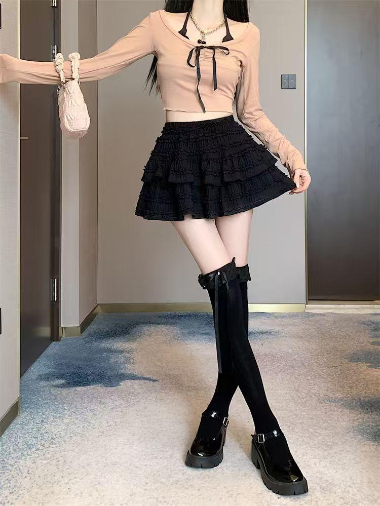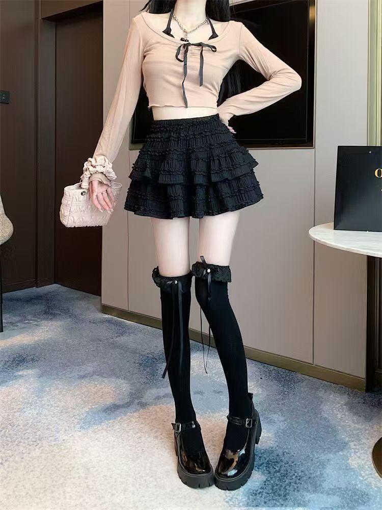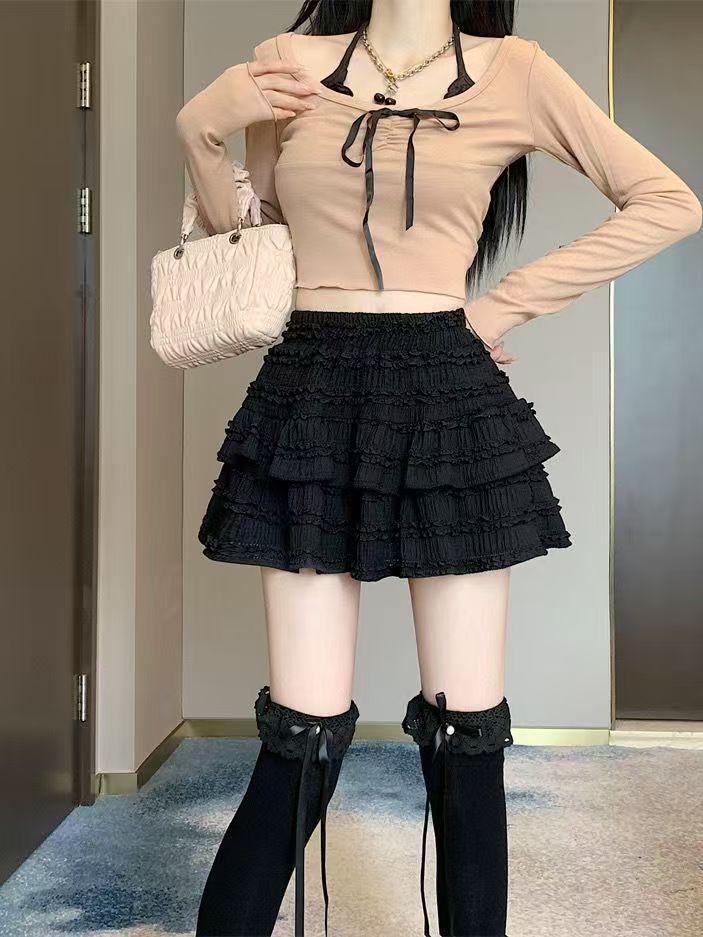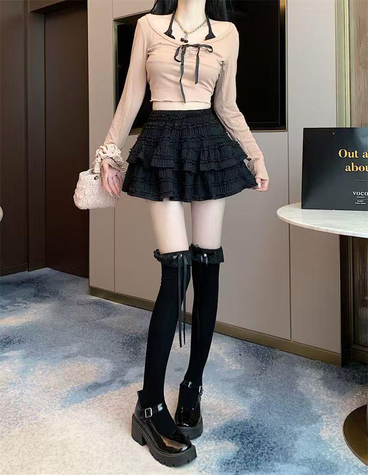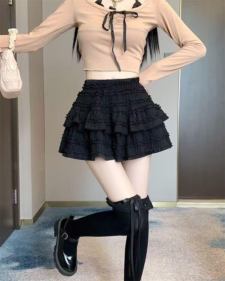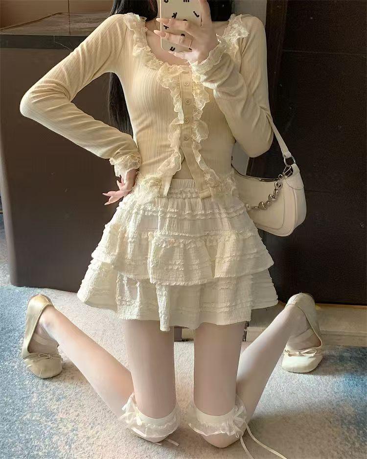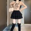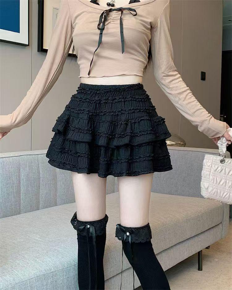Saia de bolo branco saia feminina verão nova cintura alta A- linha curta renda balé saia inchada