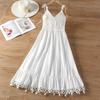 Saia de Praia Midi Fenda Emagrecimento Viagem à Beira-Mar Verão Novo Vestido Sexy Sem Mangas Azul de Alças