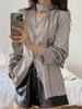 Comércio exterior por atacado transfronteiriço roupas femininas 2025 Europa e Estados Unidos novo design de temperamento de moda sentido camisa de lapela listrada L 2 830