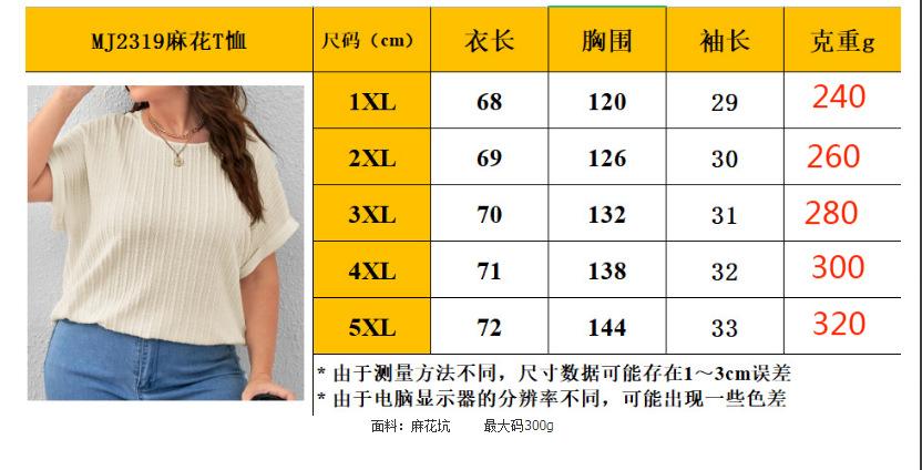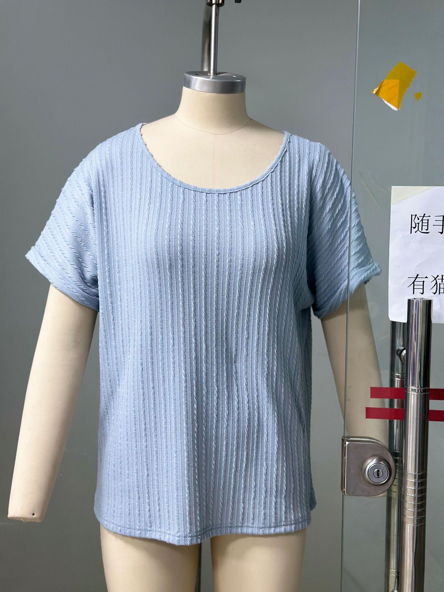 Amazon Estação Independente Comércio Exterior Transfronteiriço Moda Feminina 2024 Verão Novo Tamanho Grande Cor Sólida Camiseta de Manga Curta Europa e Estados Unidos