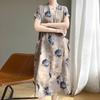1369-25 Primavera Novo Estilo Francês de Férias Fresco Floral Estampado Único Breasted Sexy Vestido Sem Costas