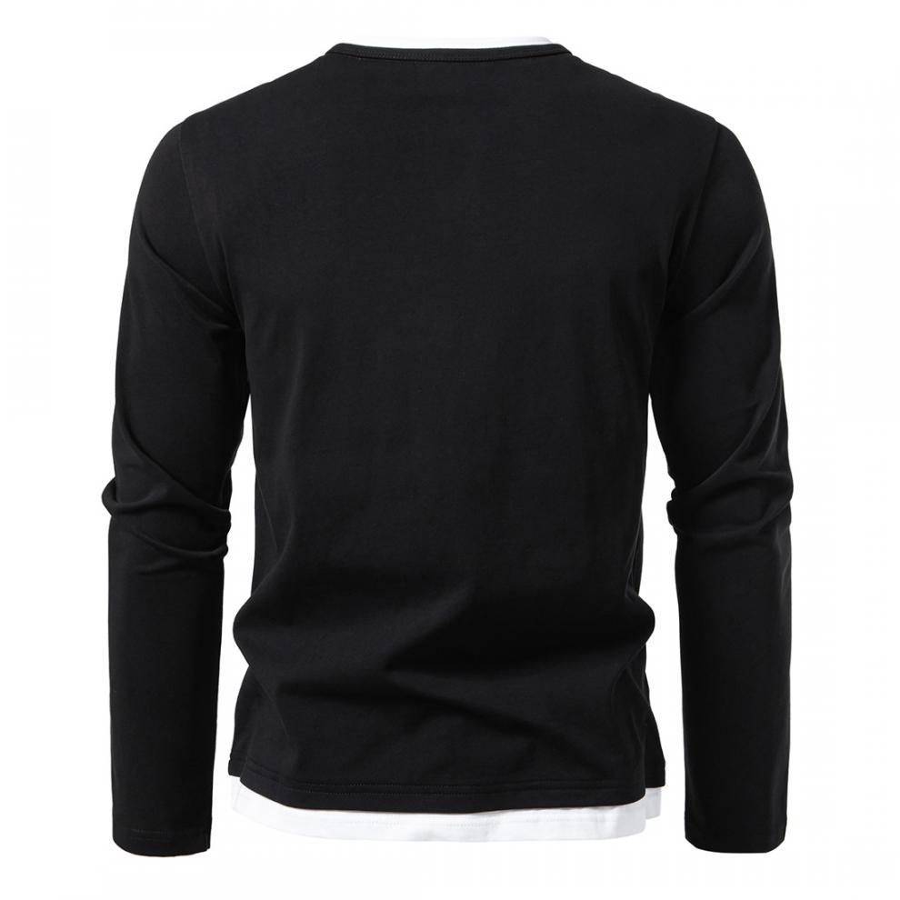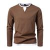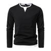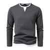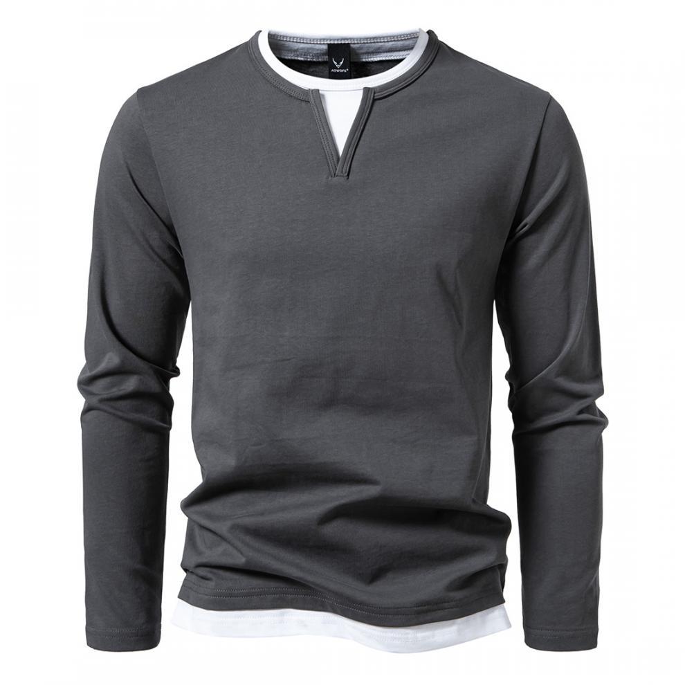 2025 primavera nova gola V dupla masculina manga longa camiseta moda masculina gola redonda camiseta