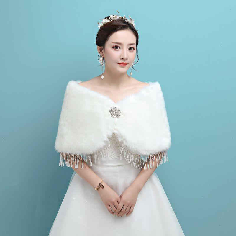 OYE Novo Vestido de Noiva Xale de Pele Xale de Noiva Acessórios para Cerimônia de Casamento Vestido Engrossado Casaco Xale Primavera Outono Inverno
