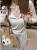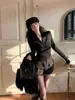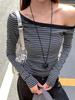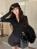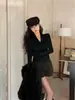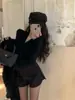 Preto Slim-fit Slimming Spice Girls Sexy Camiseta de manga comprida Quente V Neck Cruz Elegante Pure Desire Niche Top Ins