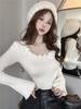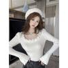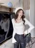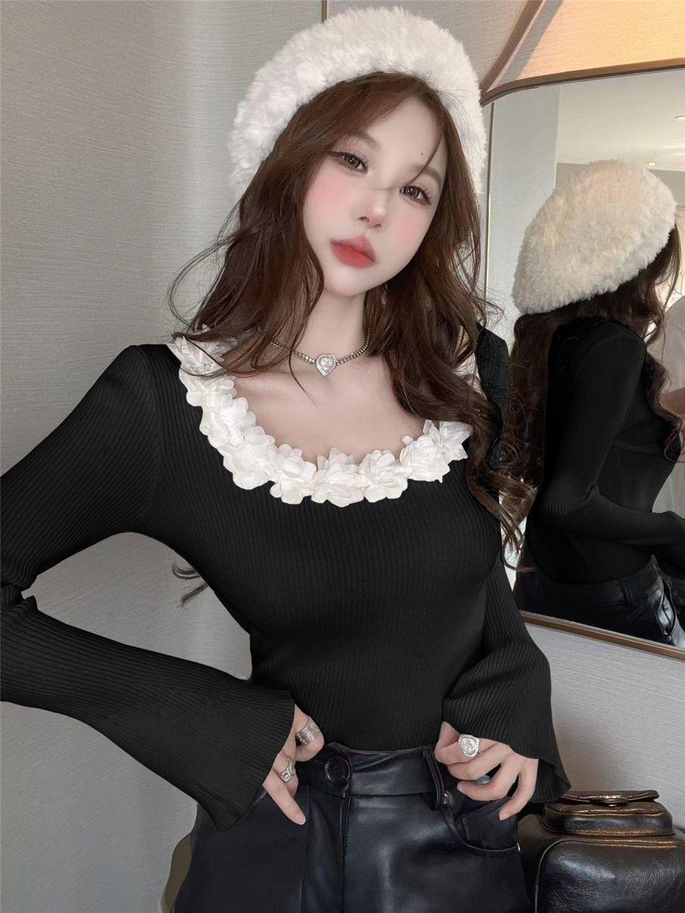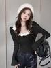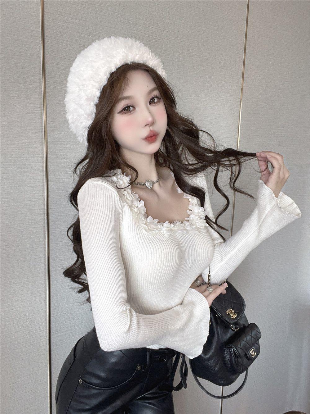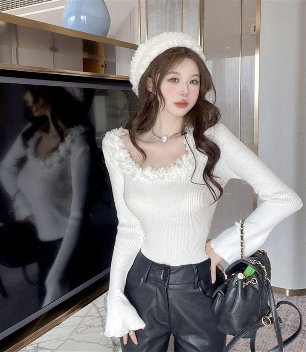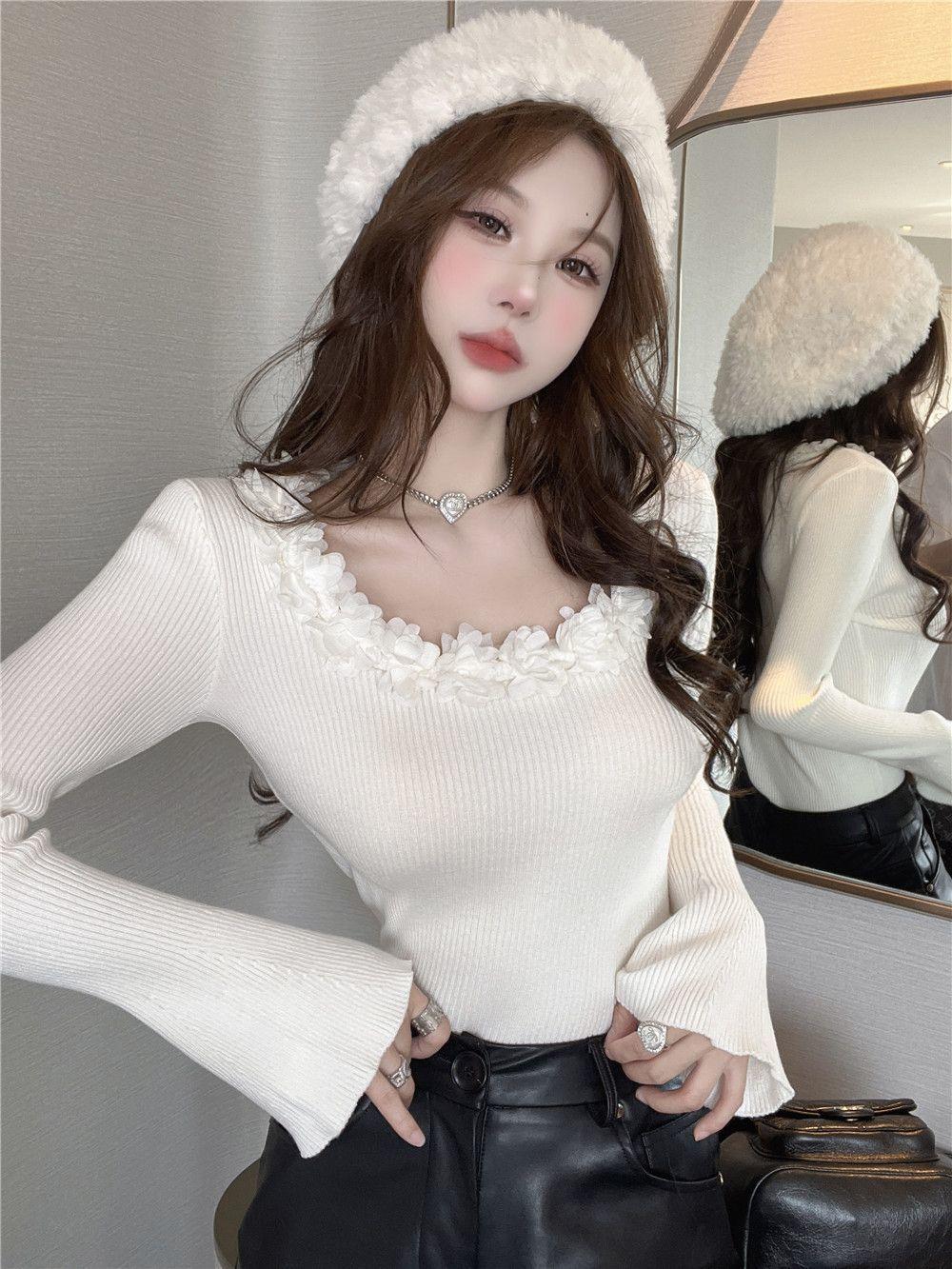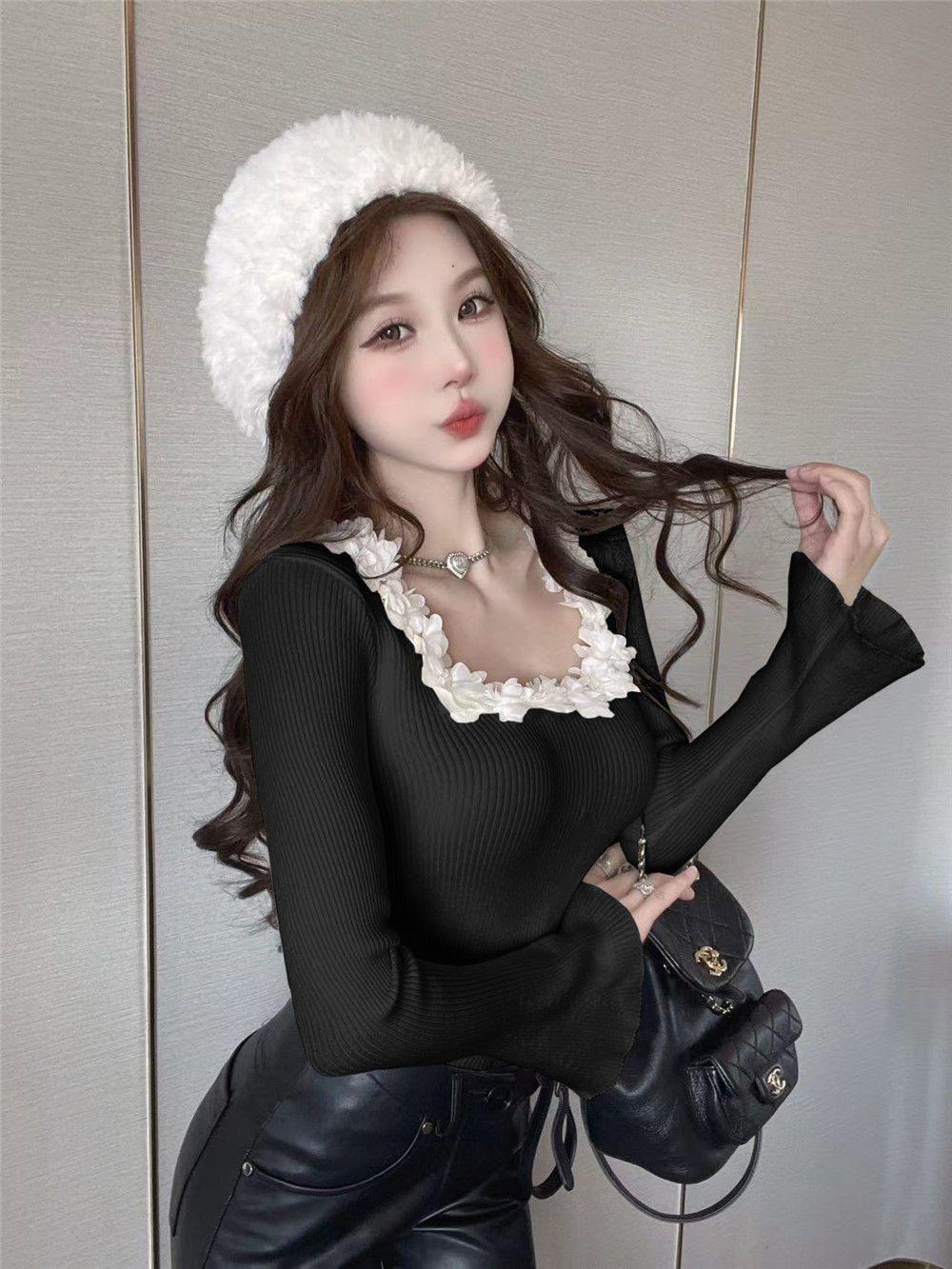 Compre Design Floral Francês Outono Puro Desejo Garota Doce Especiada Manga Chifre Manga Longa Camiseta Nicho Moda Sexy Top no atacado no Joom.pro