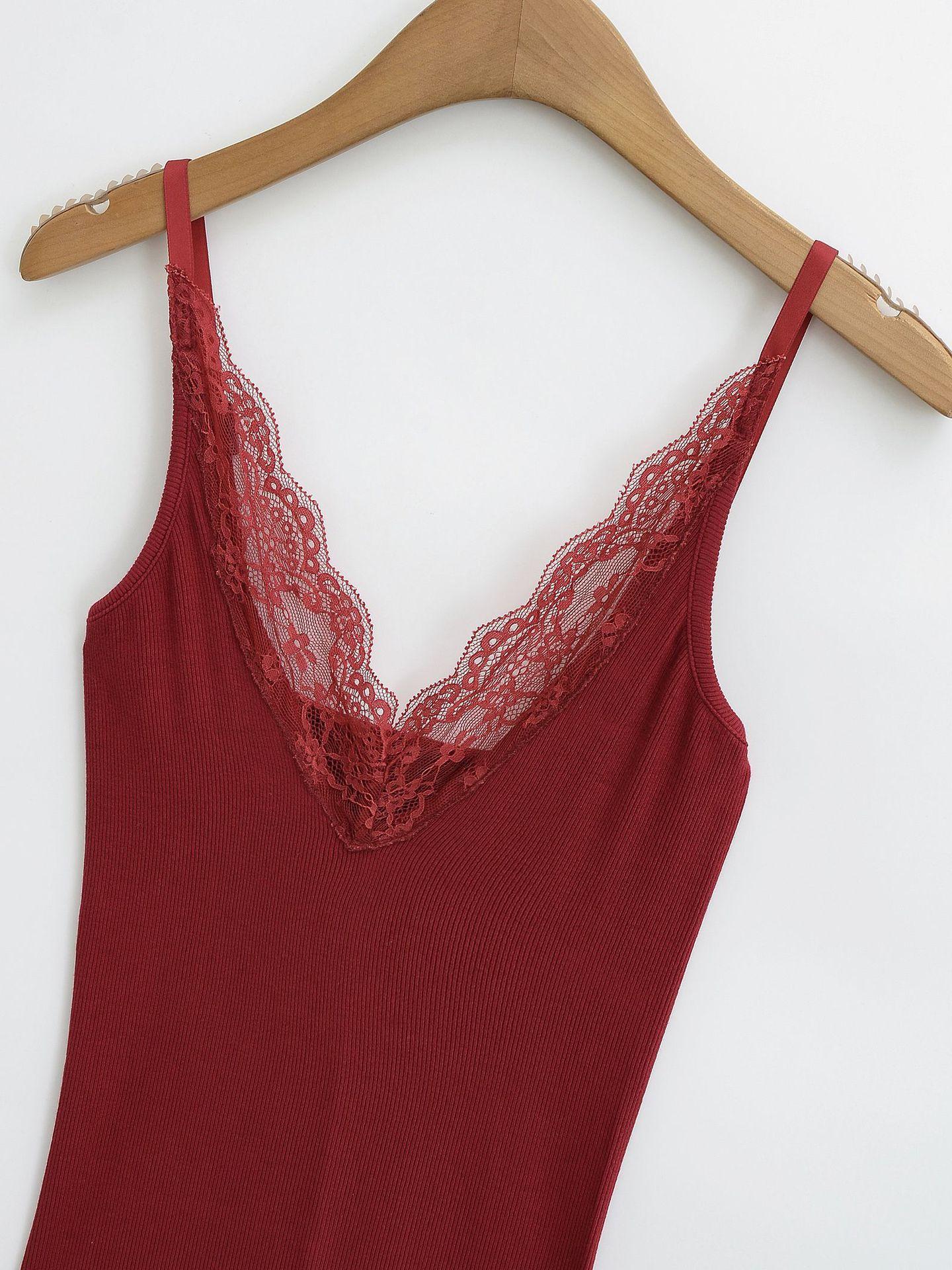 SY9111-25 Primavera Novo Europeu e Americano Pure Desire Estilo Sexy Slim-Fit Slimming Costura Renda Pequena Sling