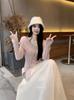 Doce Spice Girl Moda Tendência Dividido Outono Senso de Design Nicho Slim-fit Emagrecedor Sexy Versátil Estilo Desejo Puro Top para Mulheres
