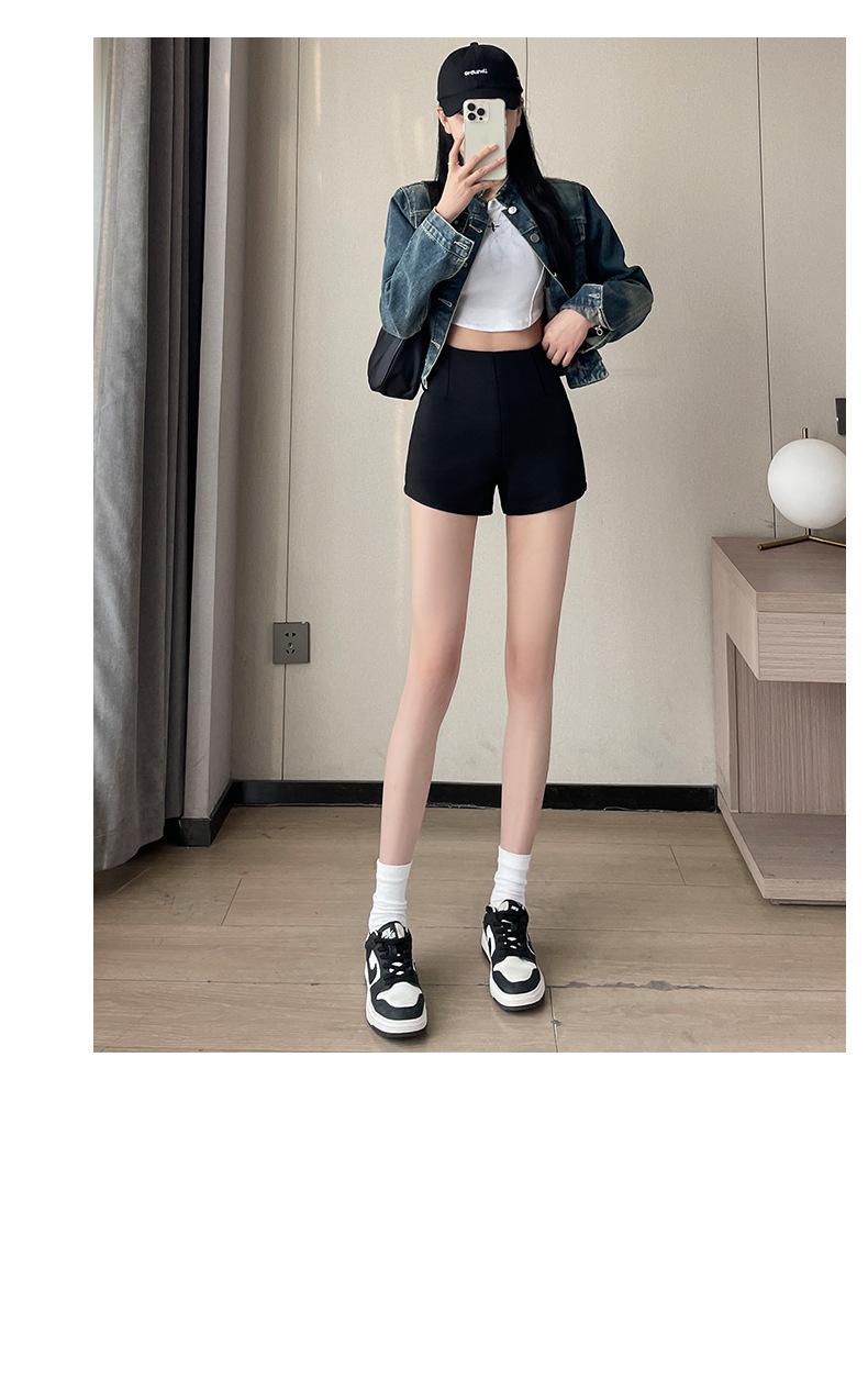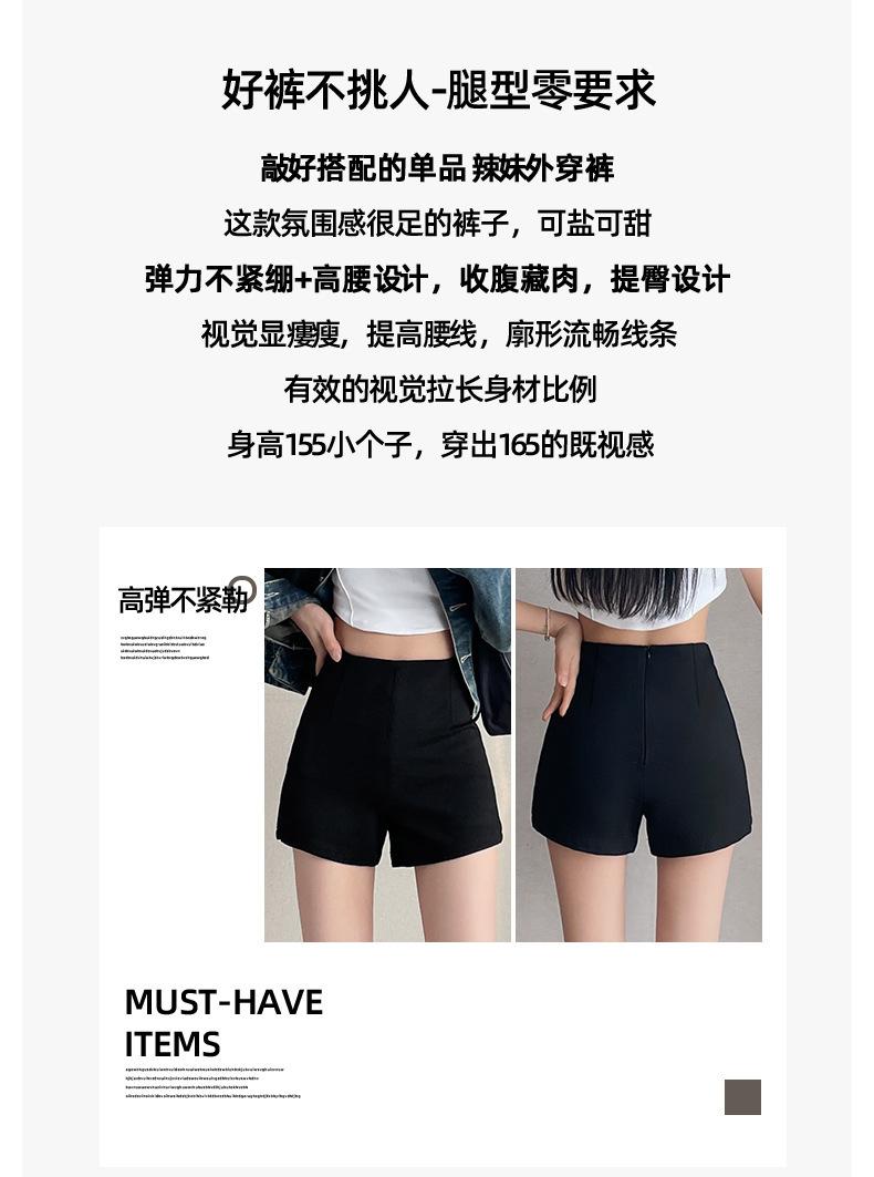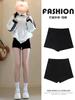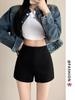 Shorts pretos para meninas quentes, femininos, 2025, nova chegada, primavera e outono, cintura alta, palavra A, casual, uso externo, calças para dança pequena, calças justas e quentes
