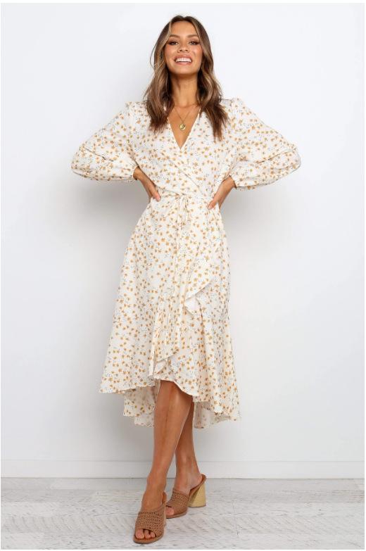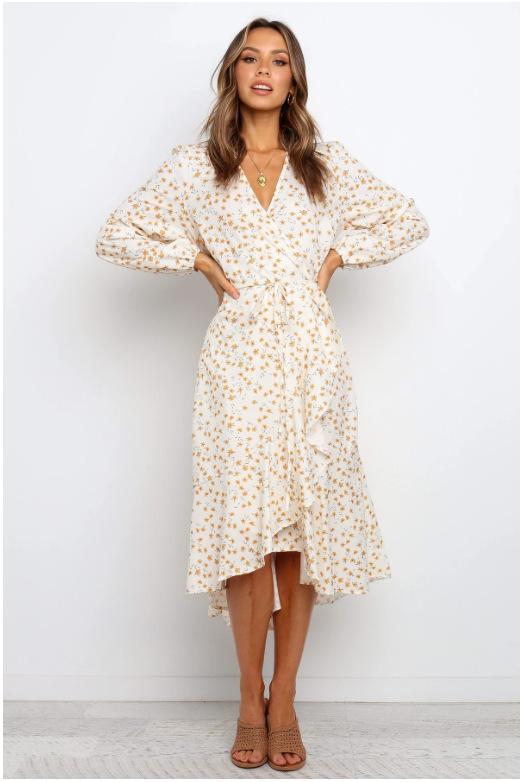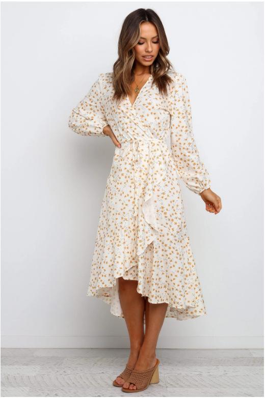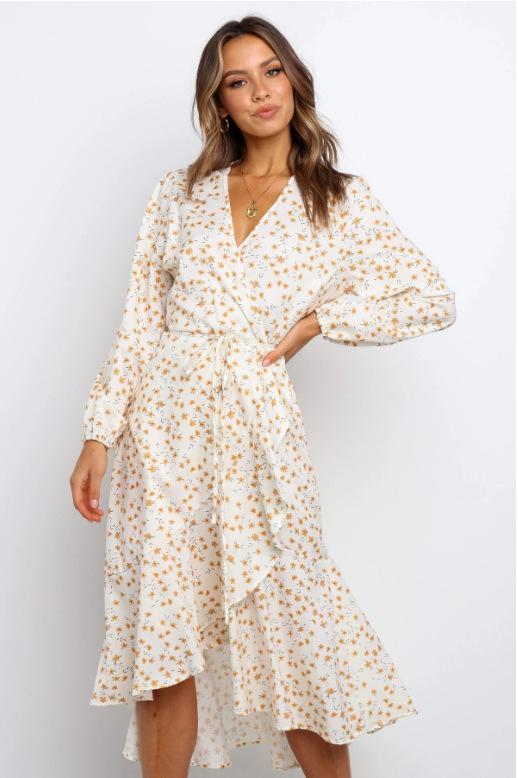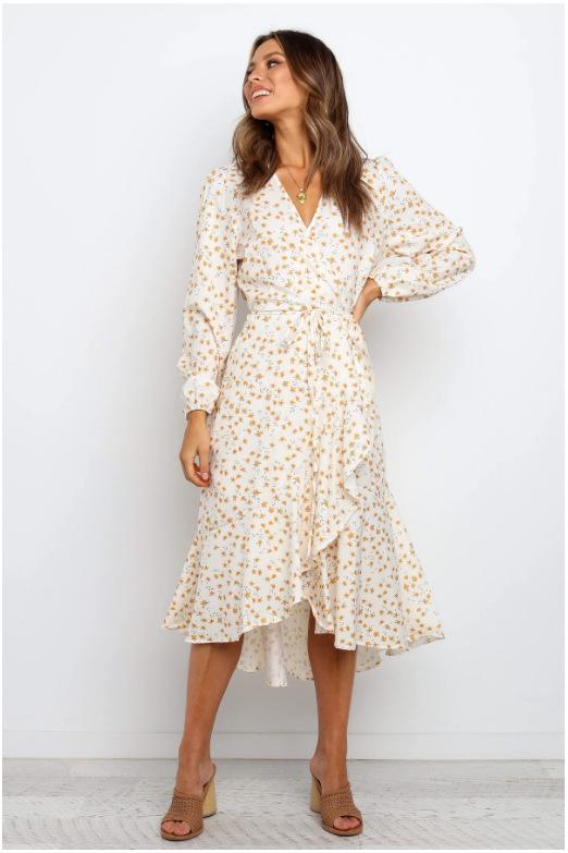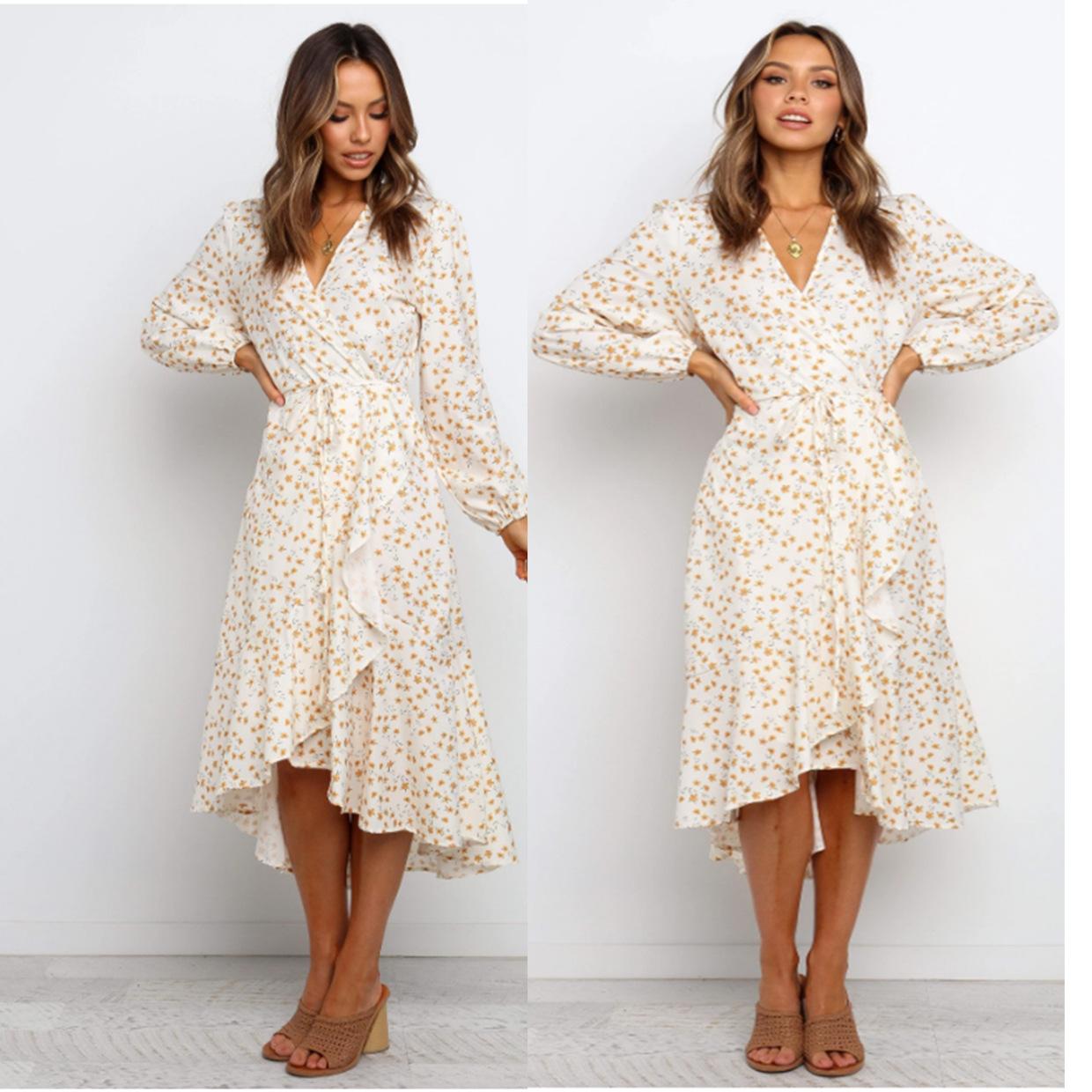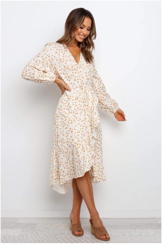 2025 Produtos Novos Europeus e Americanos de Primavera e Verão Mais Vendidos Transfronteiriços Doce Moda Floral Pequeno Vestido de Manga Comprida com Babados 175