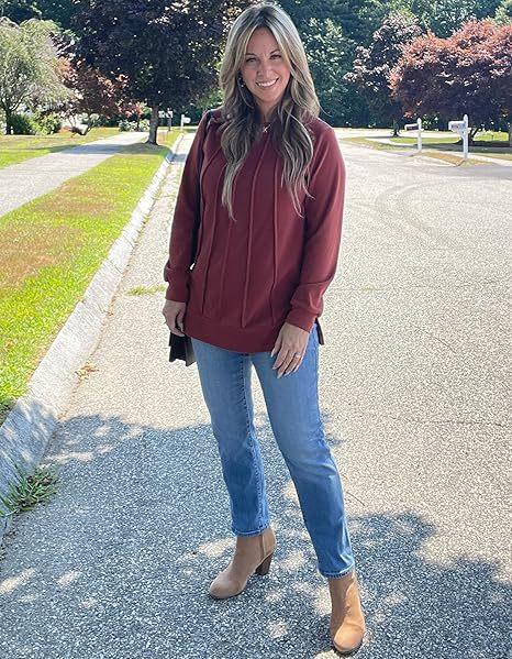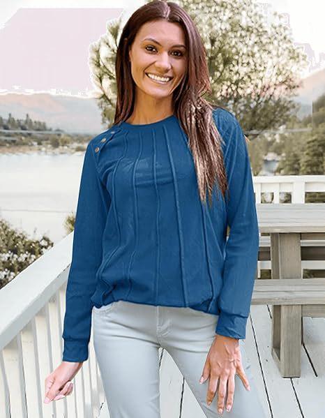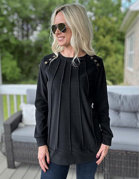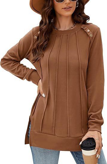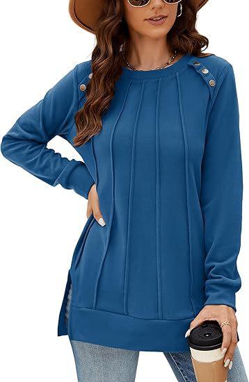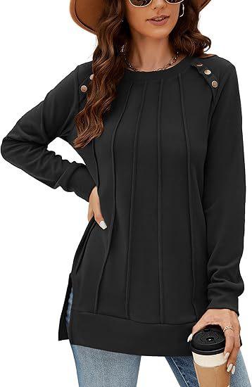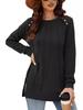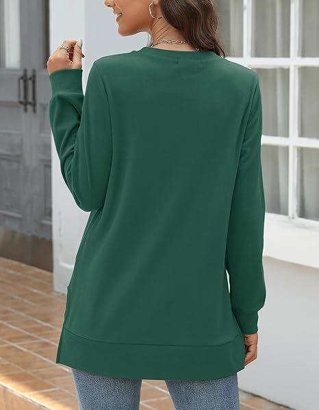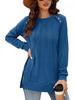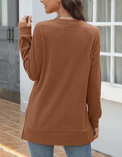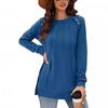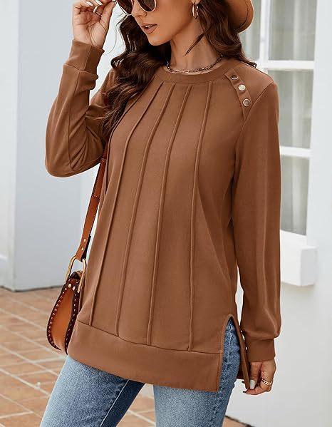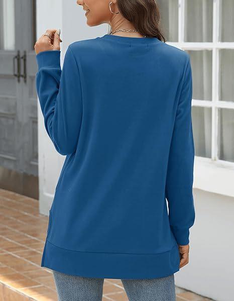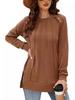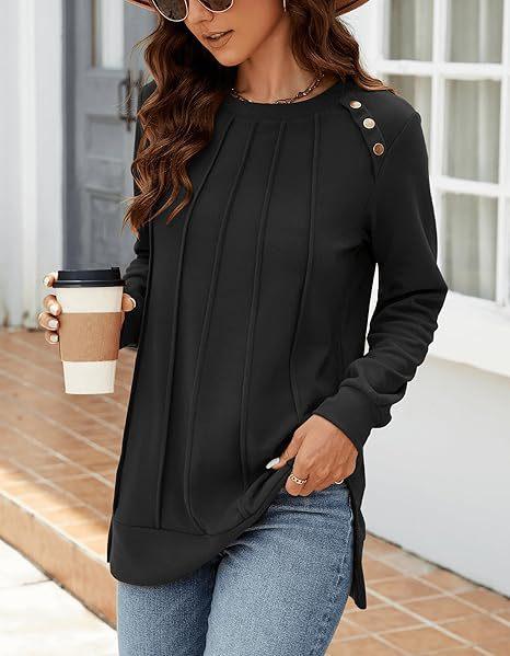 2024 nova moda feminina casual lado split outono roupas gola redonda moletom frente suéter plissado camisa de cor sólida