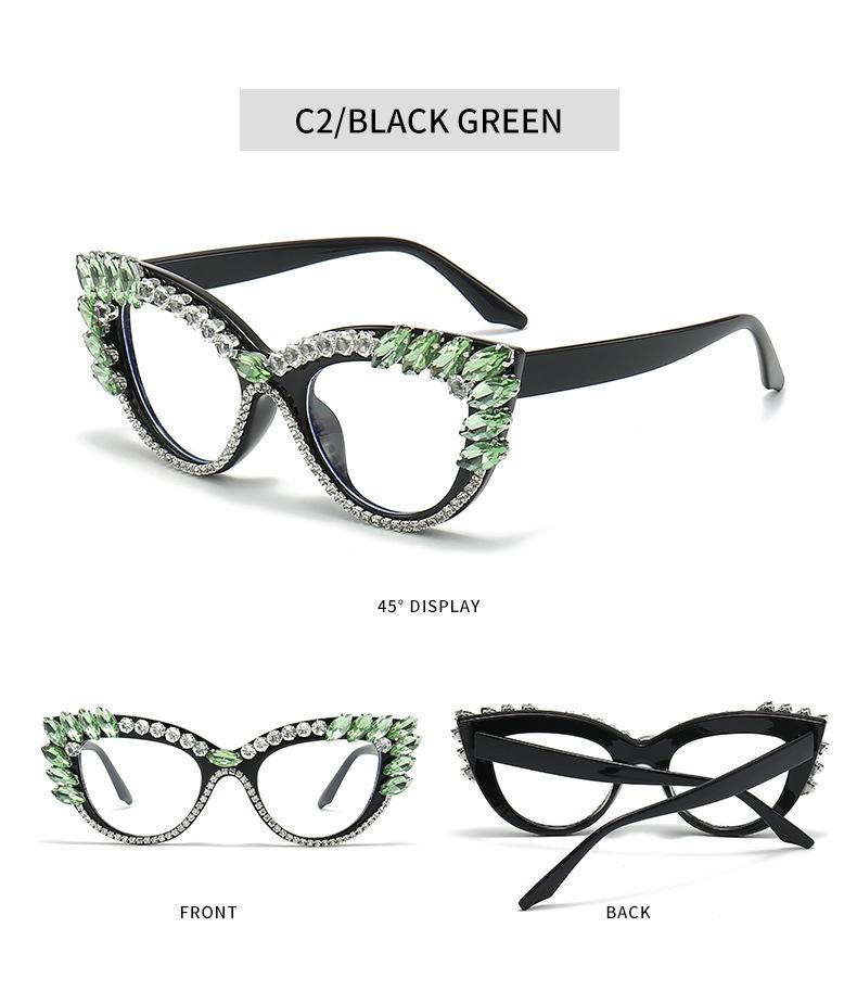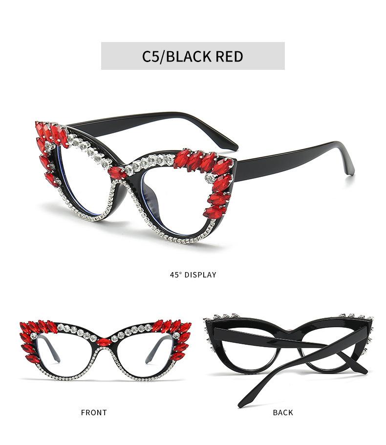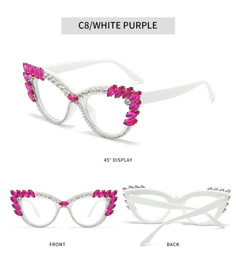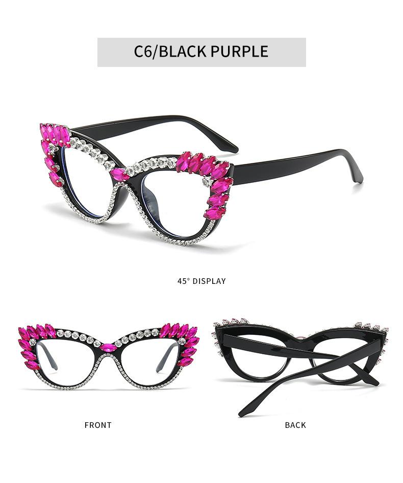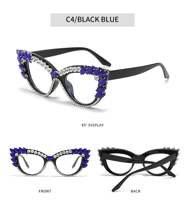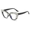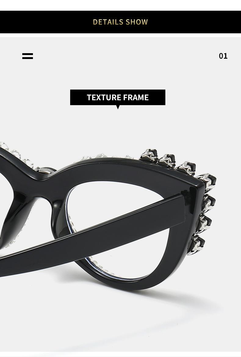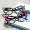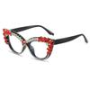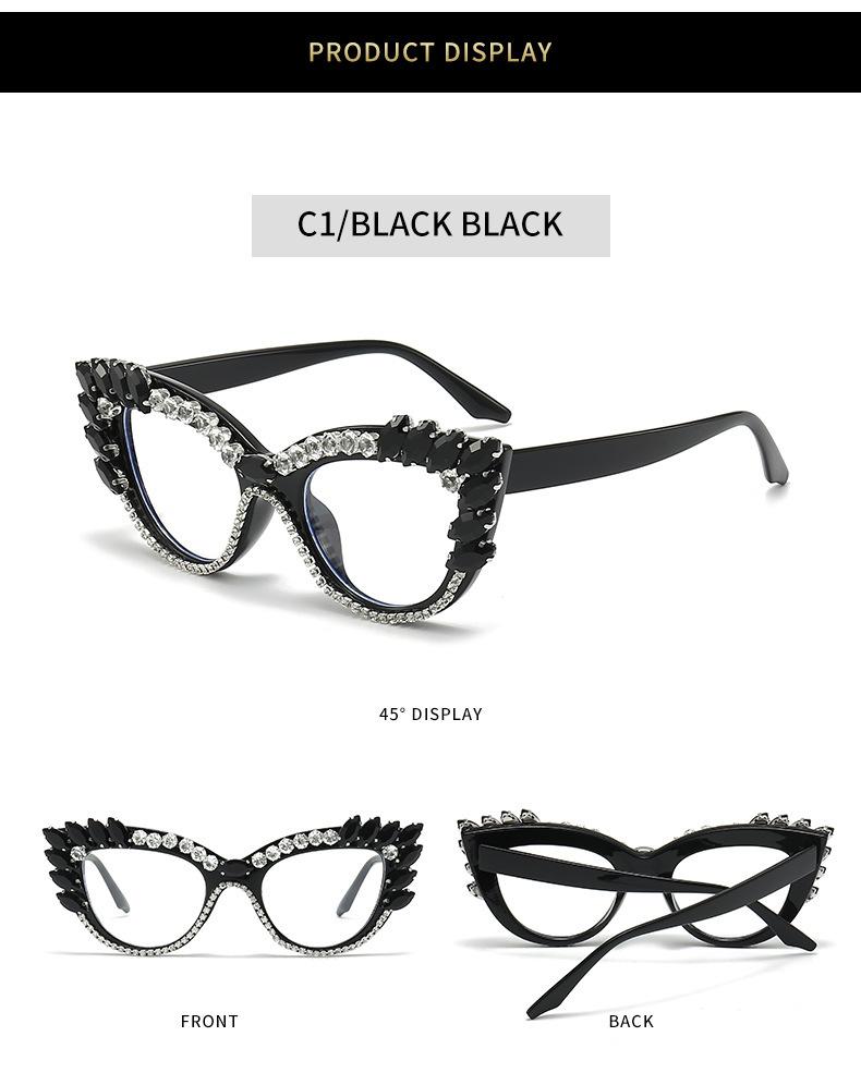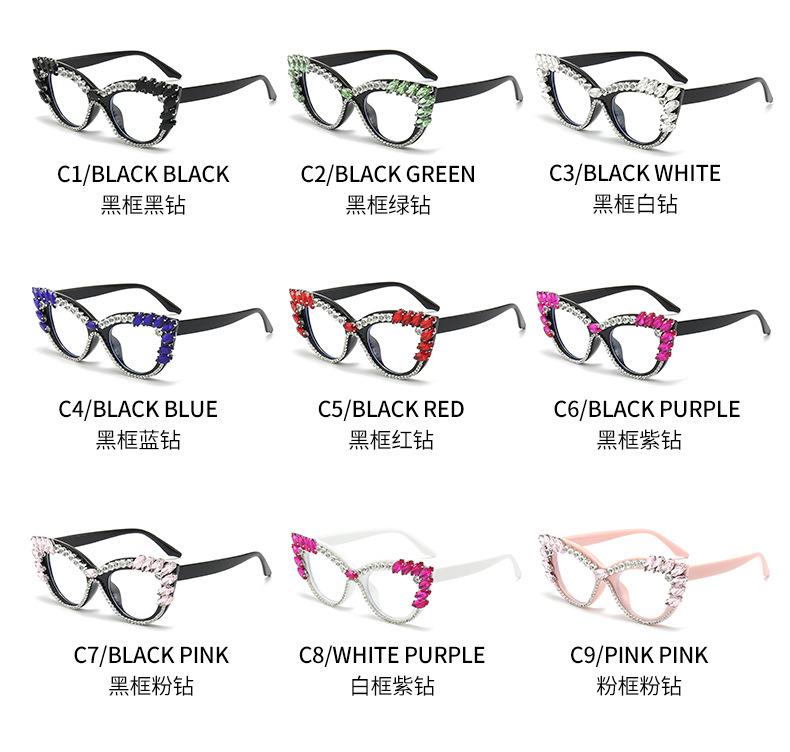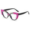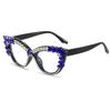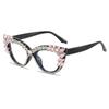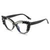 Outono 2023 novo olho de gato europeu e americano Diamante anti-luz azul óculos lisos transfronteiriços Fashion Net vermelho ins óculos decorativos