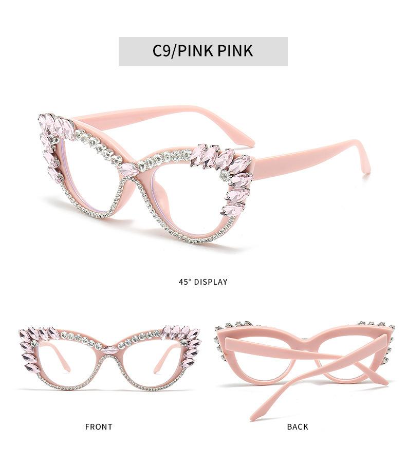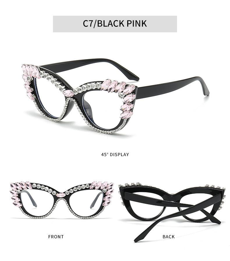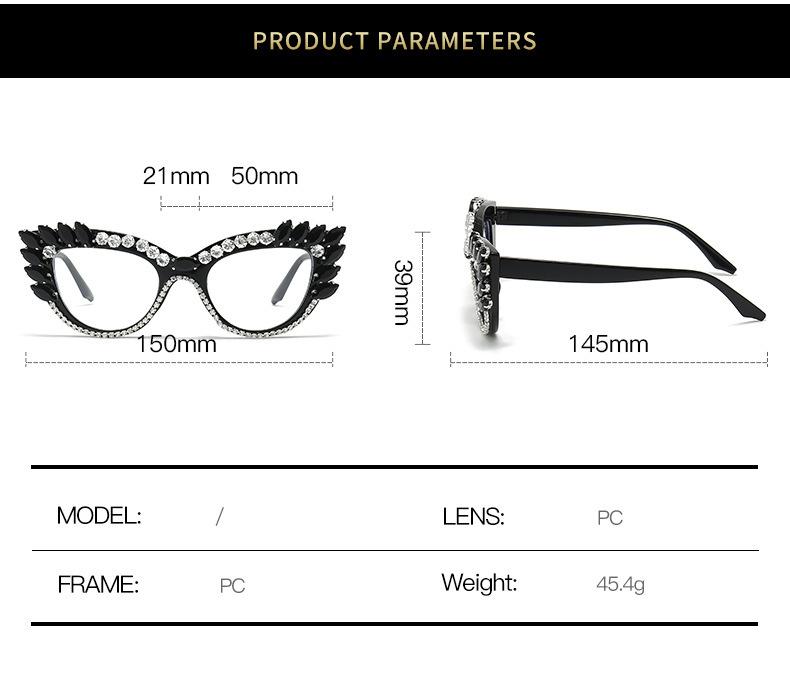 Compre Outono 2023 novo olho de gato europeu e americano Diamante anti-luz azul óculos lisos transfronteiriços Fashion Net vermelho ins óculos decorativos no atacado no Joom.pro