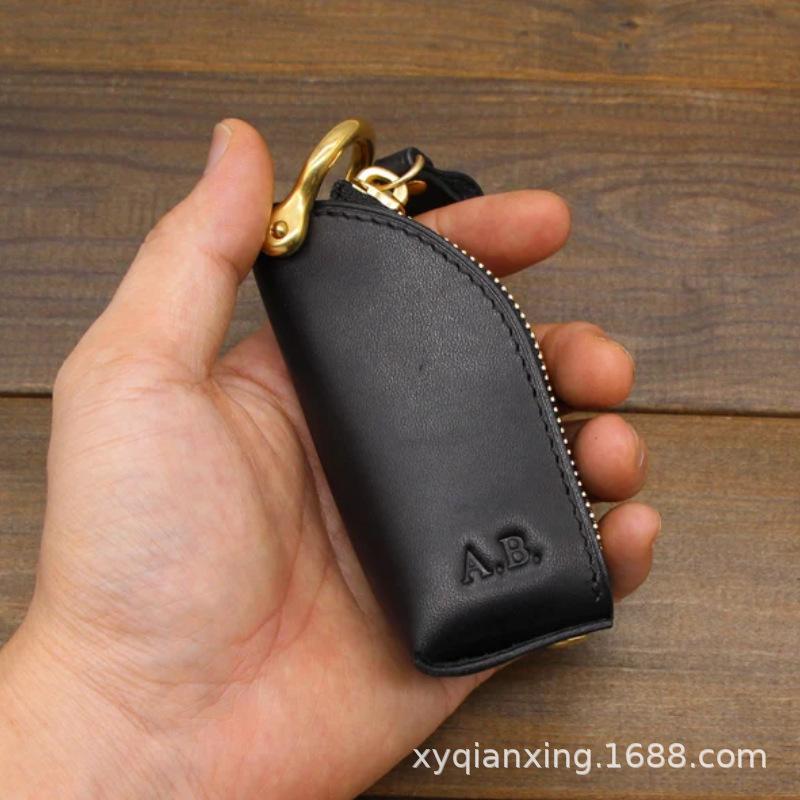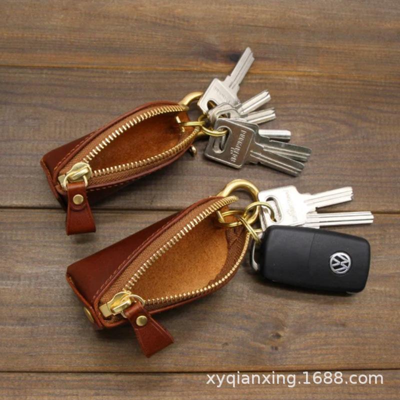 Bolsa de Chaves de Couro com Zíper Pronta do Fabricante, Capa Protetora Anti-Arranhões para Chave de Carro, Bolsa de Chaves Portátil de Mão ou Montada na Cintura