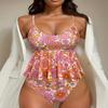 2024 Novo Amazon Lace-up Listrado Praia Swimwear Europeu e Americano Sexy Backless Split Bikini Maiô Feminino