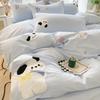 Conjunto de quatro peças de bordado de remendo de desenho animado de algodão 100 algodão, lençol de cama, capa de edredom, dormitório estudantil, conjunto de três peças, roupa de cama 4